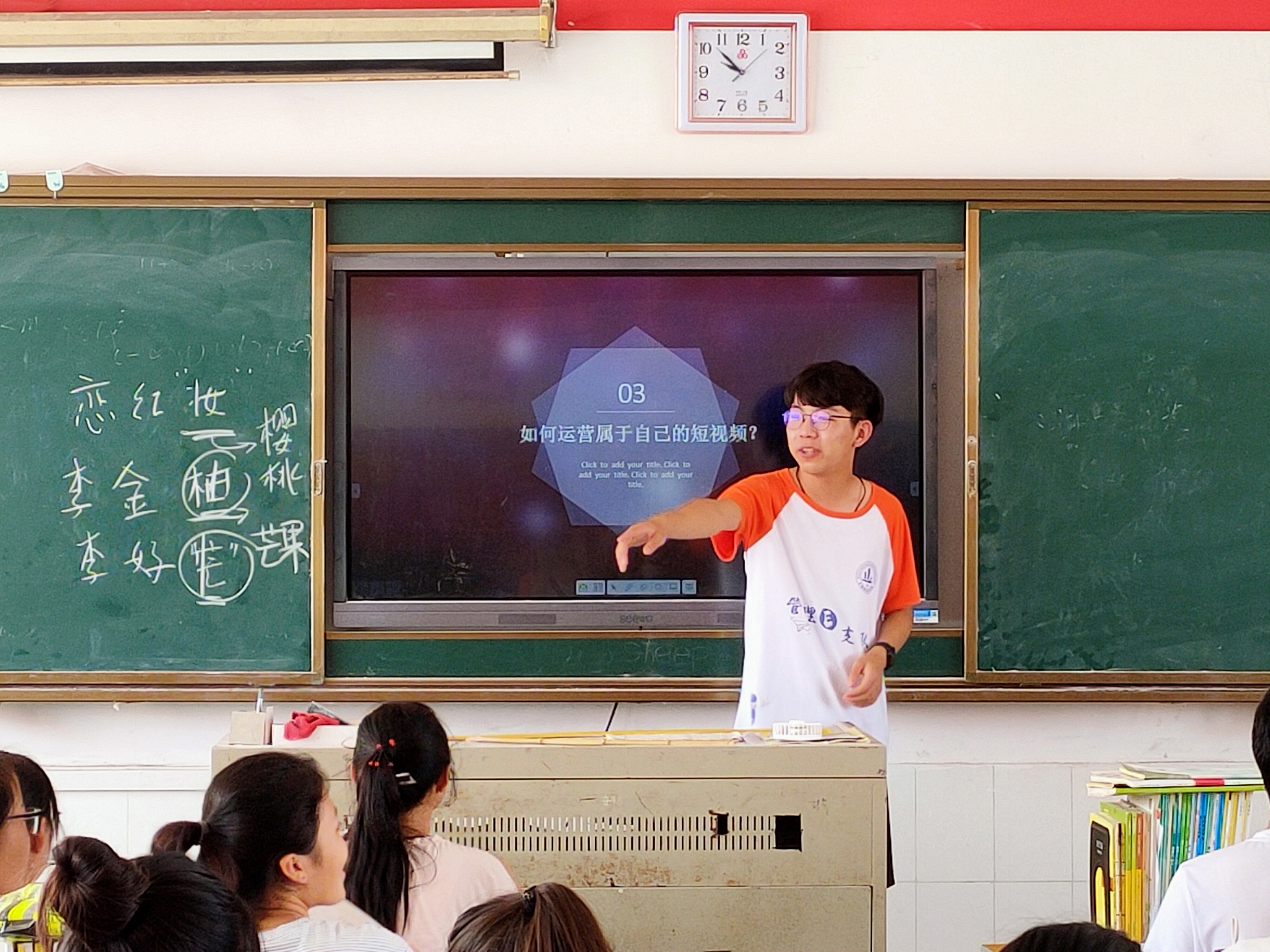 为将“乡村振兴”、“科技扶贫”思想融进课堂内容,以引导学生开拓思维,促进乡村教育及地方经济的进一步发展,志愿者给同学们上关于电子商务与新媒体运营的交流课程。