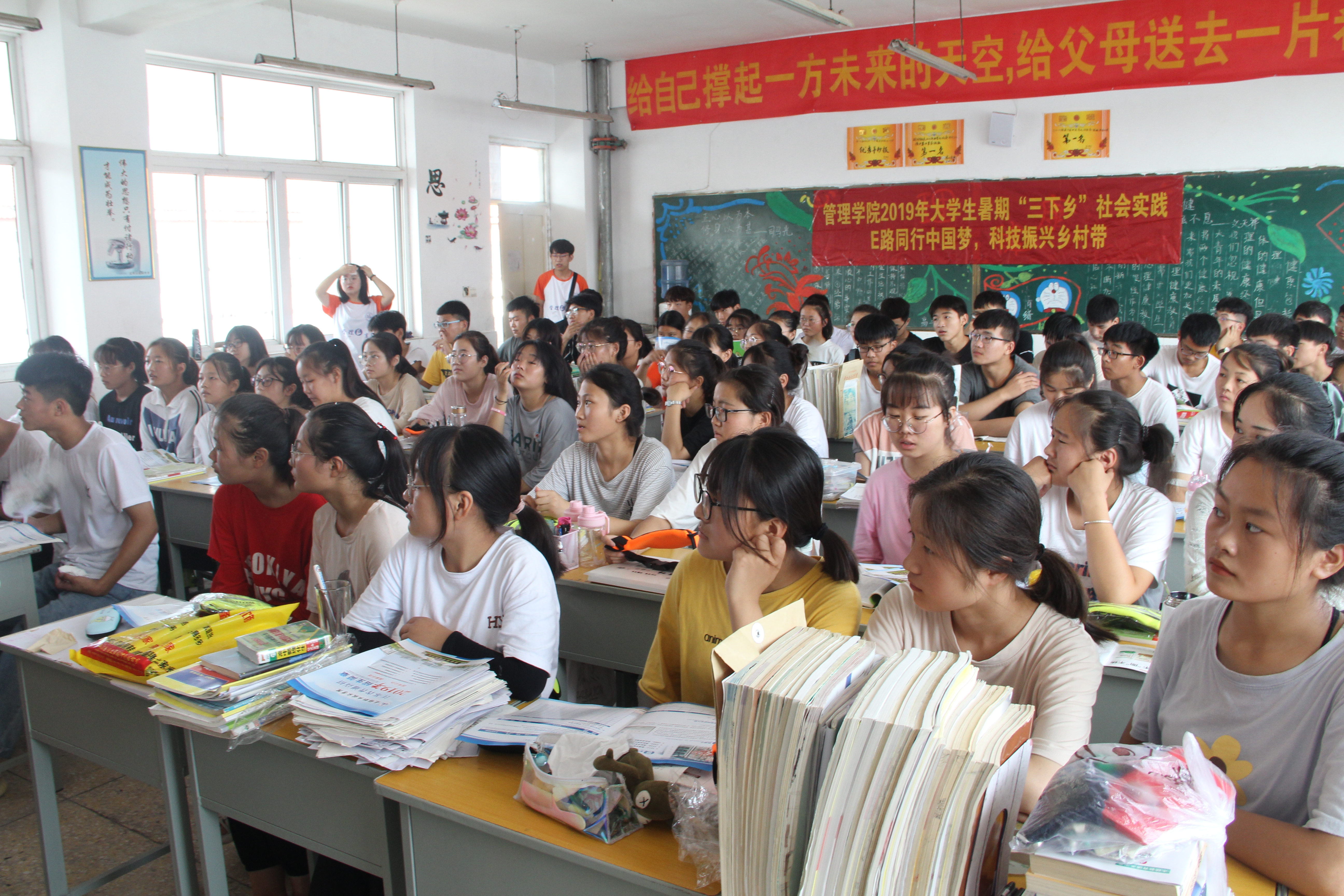 7月25日,管理E支队成员们顶着炎炎烈日,带着眷恋不舍的心情来到宿羊山高级中学,开启一天的实践活动。