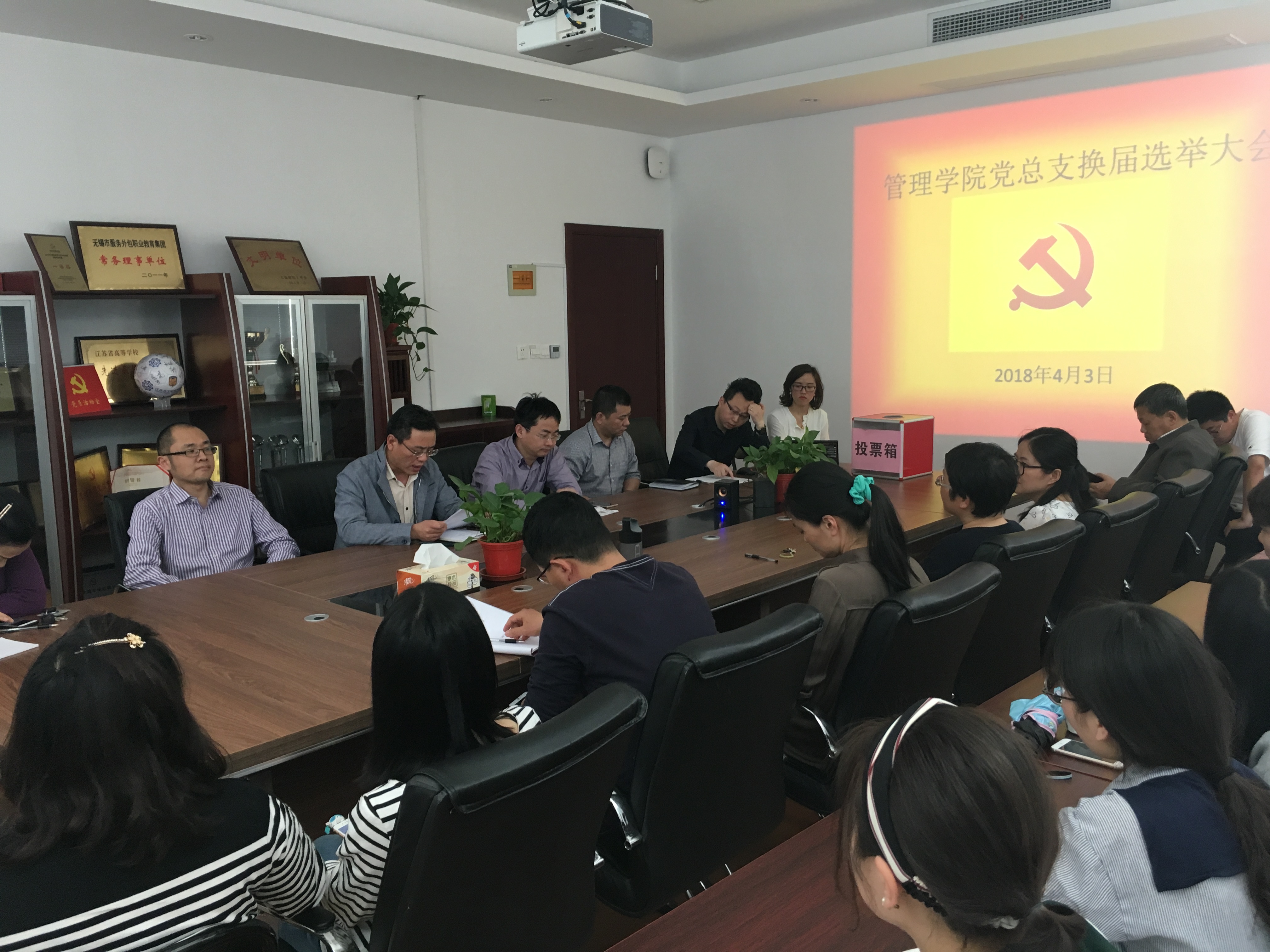 管理学院党总支自2015年4月成立以来,已任期届满。总支于2018年4月3日下午召开全体党员大会,进行了新一届党总支委员的换届选举工作。管理学院26名党员参加了会议,实到会正式党员21名。