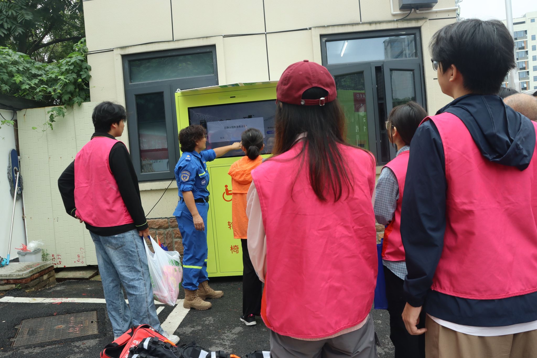活动中,党员志愿者们在驿站工作人员的指导下,详细了解应急救援驿站的“物资保障、知识普及、快速响应、日常服务”四大核心功能。在物资保障区, 志愿者们认真学习急救包、折叠担架、灭火器等应急设备的使用方法,并针对社区常见场景进行了模拟演练。