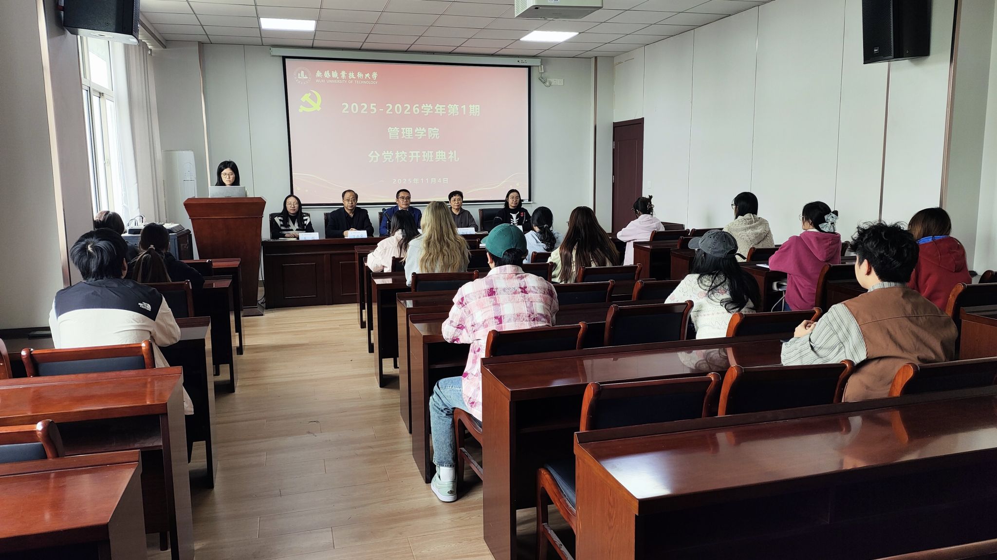 为深入学习贯彻习近平新时代中国特色社会主义思想,贯彻落实党的二十届四中全会精神,严把党员发展入口关,管理学院于11月4日下午在J1-404,举办2025-2026-1秋季分党校开班仪式。管理学院党总支书记俞林、党总支副书记丁正荣、学生党支部书记华涓、关工委邹笑言及本期培训班16名学员共同参加开班典礼。本次典礼是一次深刻的思想动员与精神洗礼,旨在引导全体学员筑牢信仰之基、补足精神之钙、把稳思想之舵。