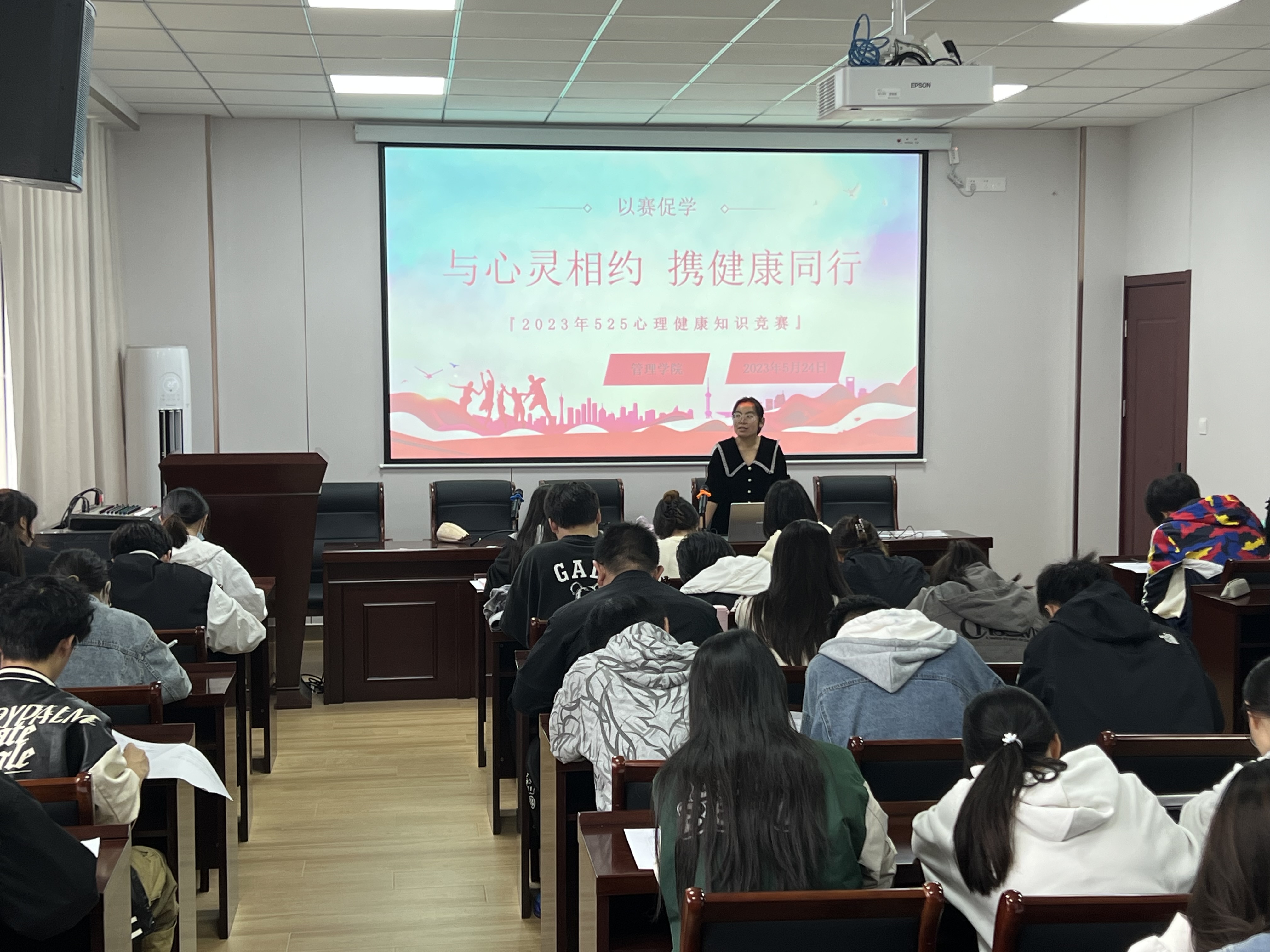 为丰富校园文化活动,普及心理健康知识,增强管理学院学生心理健康素质,提高学生心理健康水平,积极引导广大同学们保持健康向上的心理状态,5月24日17时,管理学院在明德楼A-404组织开展了“与心灵相约·携健康同行”的525心理健康知识竞赛,60多名同学到场参赛。