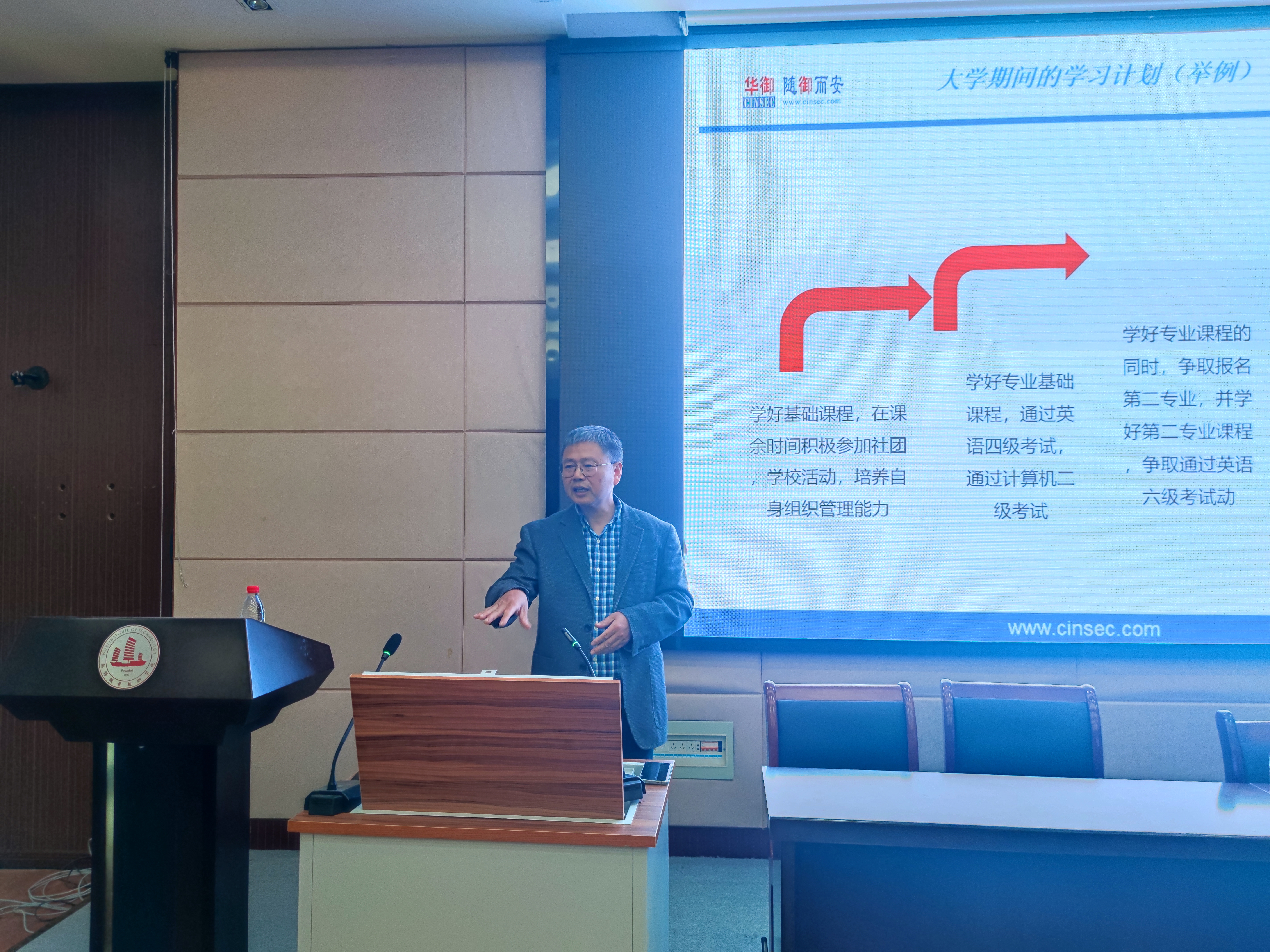 为使同学们深化自身特质认识、综合对比分析自己的优势和劣势、找准个人价值定位,针对性地学习提高,进一步锤炼创新创业能力,促进就业,管理学院于2020年10月25日邀请江苏华御信息技术有限公司耿振民老师,组织开展了一场大学生职业生涯规划与创新创业讲座。