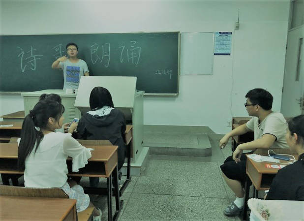 为了弘扬民族优秀的文化传统,传承中华文明,营造浓厚的诵读古诗氛围,提升全体学生的文化素养,养成多读书、读好书的文化生活习惯,激发学生对祖国语言文字的热爱,全面提升学生的语言文字应用能力和综合素质,我生活部在学校教三404举行了“诗文诵读”比赛活动。比赛开幕,担任比赛评委的分别是我校多名国家普通话水平测试员语文老师。