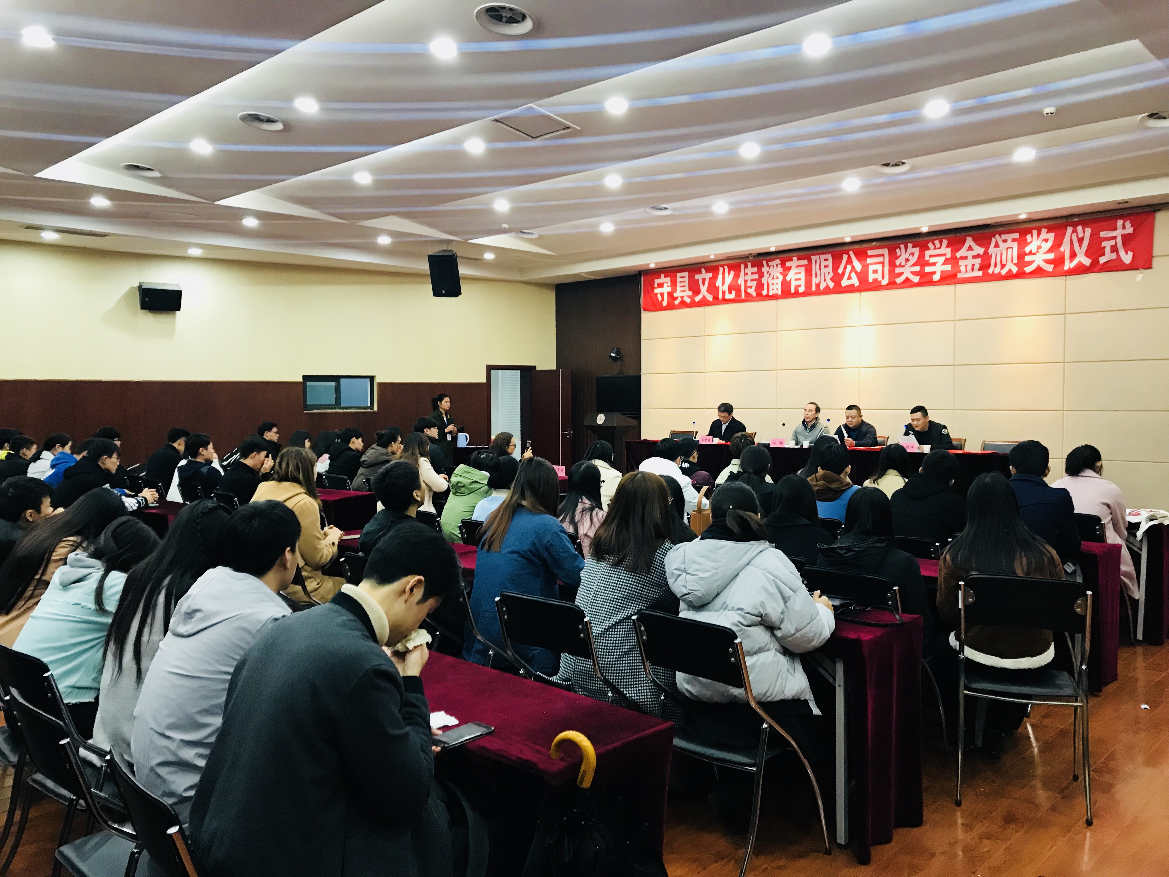 随后,守具文化传播有限公司总经理熊磊对公司做介绍,并表明设立守具奖学金的目的是为了支持教育事业的发展和鼓励那些为班级、为学院做出突出贡献的同学们。获奖学生代表李知恒发表获奖感言:感谢守具文化传播有限公司给同学们的这份殊荣,将以实际行动回报企业、回报学校、回报社会。
