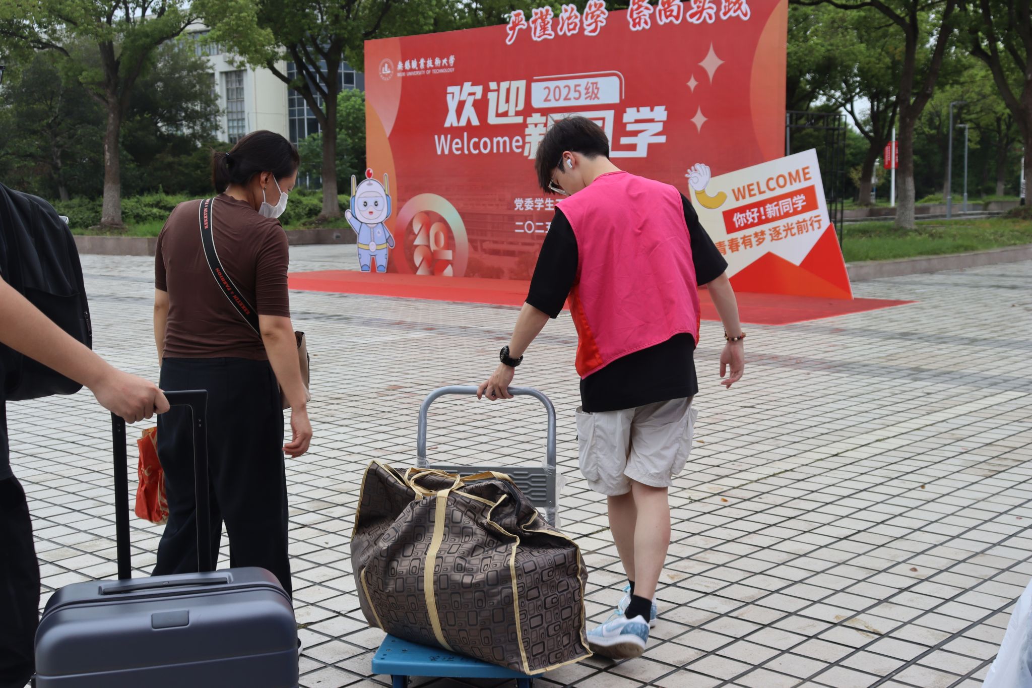 迎新当天,学院迎新点人头攒动却秩序井然,处处洋溢着热烈而温馨的氛围。早上七点,志愿者们就已全部到位,搭帐篷、搬物资、贴标识,迅速完成现场布置。“同学你好,我带你去你的宿舍!”“行李我来帮您拿!”——志愿者们身着统一服装,以热情的微笑和耐心的指引,主动为新生提供帮助。他们不仅协助办理手续、搬运行李,还细致解答关于课程学习、校园生活的各类问题,忙碌的身影成为校园中一道流动的风景线。学院领导亲临现场,与新生及家长亲切交流,细致了解报到情况,介绍学院发展、专业特色与人才培养成果,让家长倍感安心。班主任坐镇报到处,帮助新生完成入学手续,解答学生疑问,熟悉校园环境。
