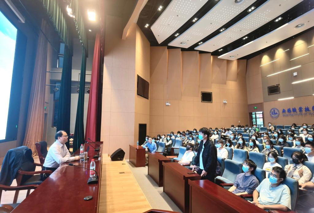 颛孙丰勤首先介绍了江苏大学无锡机电学院的整体情况及未来建设目标,对特邀嘉宾及全体本科生参会表示了热烈欢迎。随后,田红云教授就如何准备考研、出国留学注意事项、未来就业和薪资及职业发展前景等方面向同学们作了详细介绍。他指出,同学们应该从大一就开始制定学涯、生涯规划,明确奋斗目标,而后进行阶段性的复习准备,在这个过程中要灵活运用艾宾浩斯记忆曲线等记忆方法,掌握应试技巧。此外,田老师还建议同学们重视沟通能力、语言表达能力的培养,最后,针对学生关心的专业前景和是否要跨专业考研、是否要出国等问题,田老师给予了耐心、细致的回应。