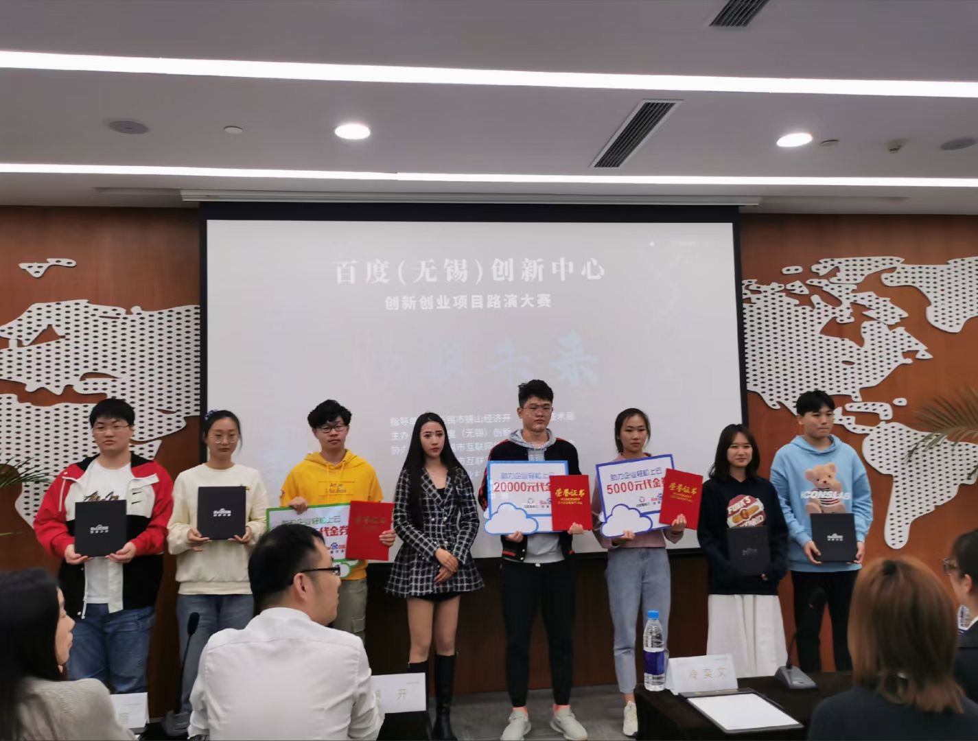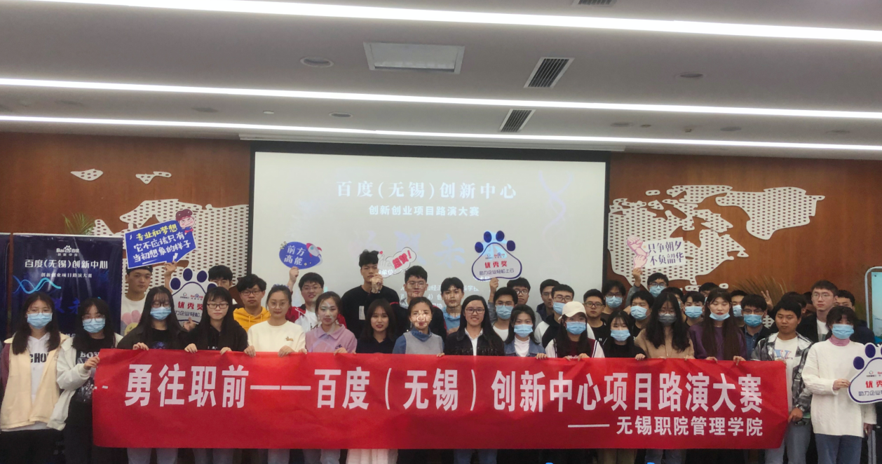 为加快实施创新驱动发展战略,推进大众创业,万众创新,提升广大学生的就业创业能力,2020年10月29日,无锡职业技术学院管理学院携手百度(无锡)创新中心于茂业国金中心举办创业路演大赛。出席本次活动的评委分别是无锡金柚网苏南区市场总监张熙哲、无锡迈捷科技有限公司副总宁婧、北京市盈科律师事务所党支部副书记姚慧丽、无锡乐鸿文化有限公司CEO冷奕文、无锡互联网协会工益专委会会长浦开、无锡市互联网协会部长薛文婷、百度(无锡)创新负责人倪可。