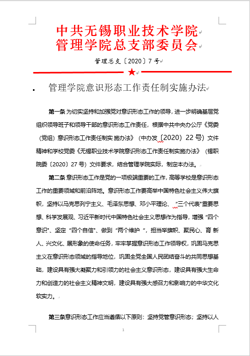管理学院意识形态工作责任制实施办法
