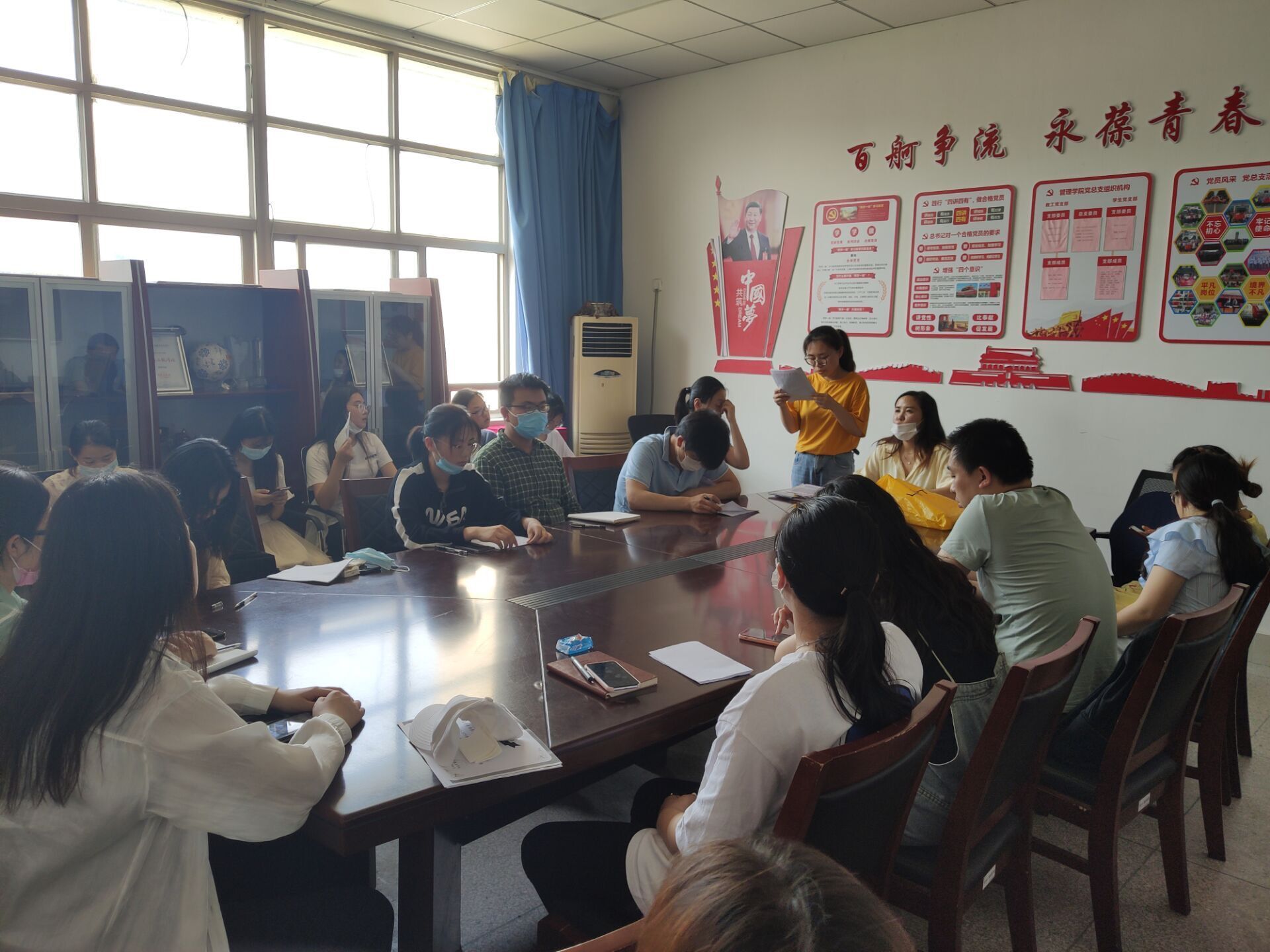 2020年6月2日,管理学院党总支学生党支部在明德楼A-302召开了全体党员大会,讨论预备党员转正事宜。本次大会应到41人、实到39人(线下26人加未返校学生党员13人)、请假2人、符合开会标准。会议由支部书记朱琳同志主持。