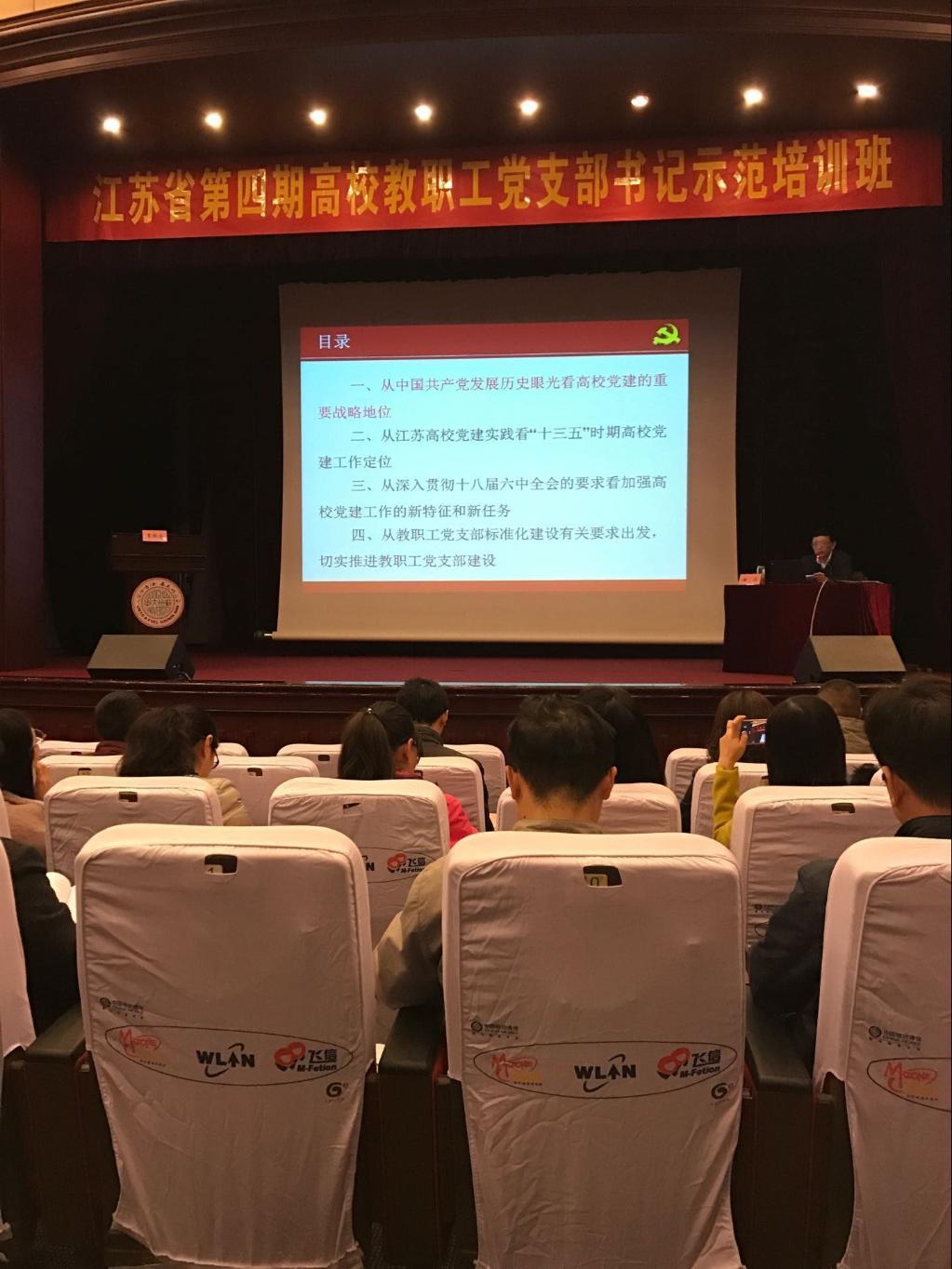首场报告《认真贯彻十八届六中全会精神,切实推进教职工党支部标准化建设》由省委教育工委潘漫副书记主讲,他从全局的广度、历史的深度、发展的高度详细阐述了如何以十八届六中全会精神为指导,切实推进高校教职工党支部标准化建设工作,该报告使学员们深刻领会了十八届六中全会和习近平总书记讲话的精神实质,坚定了做好基层教职工党支部书记工作的决心。
