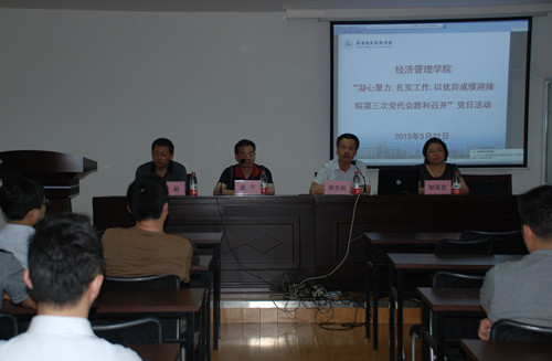 会上,经管学院党总支书记胡全裕代表经管学院总支作了题为“凝心聚力,扎实工作,以优异成绩向党代会献礼”的主题发言。胡书记的发言分为两个部分, 第一部分,回顾了过去5年在上一届党委班子领导下学院取得的辉煌成绩,介绍了本届党代会召开前期各项筹备工作的进行情况,展望了学院“十二五”厚积薄发的发展规划。发言的第二部分,胡书记简单从师资队伍、专业建设、学生管理、校区运行等几个方面总结了经管学院5年来的发展成绩,重点指出经管学院在学院跨越式发展的新的历史时期所面临的机遇和挑战。活动中,党员教师们热烈的讨论了经管学院对高职本科专业培养的积极探索以及多校区运行模式下各方面工作的创新与改革等诸多热点问题,大家畅所欲言,各抒己见,碰撞出了很多思想火花。现场气氛热烈,高潮迭起。