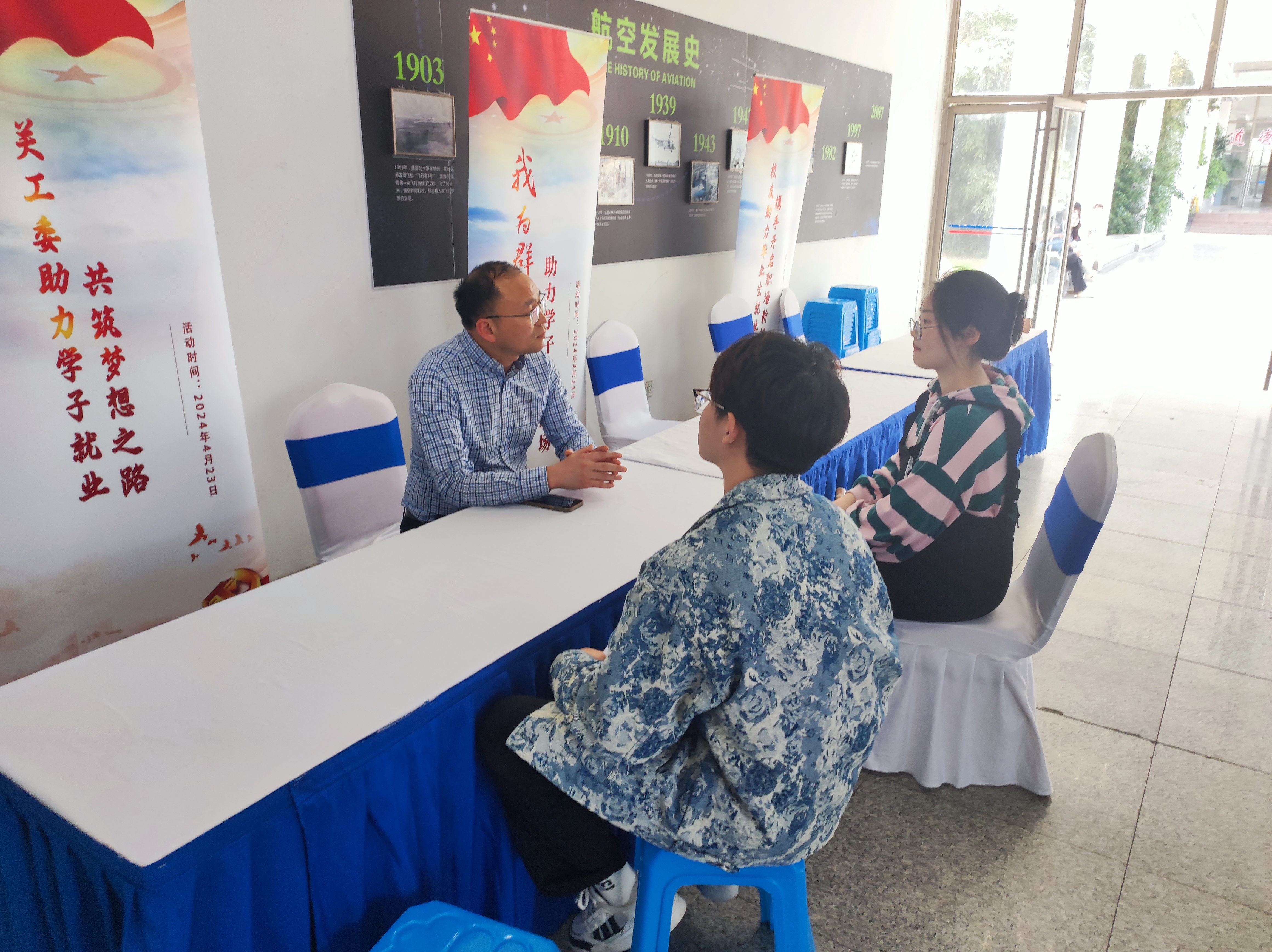2024届高校毕业生就业工作已进入关键阶段,管理学院以开展“春季促就业攻坚行动”为契机,为广大毕业生搭建起施展才干、成长成才的广阔舞台。2024年4月23日下午,由管理学院、财经学院和物联网工程学院联合举办的2024届毕业生专场招聘会于明德楼C一楼圆厅正式拉开序幕,合力推进毕业生能就业、好就业、就好业。副校长强伟纲、招生就业处处长房磊和分院领导深入招聘会现场,与用人单位和毕业生亲切交流,了解用人单位岗位需求和毕业生就业意向,并鼓励毕业生调整心态,助力学子征战职场。