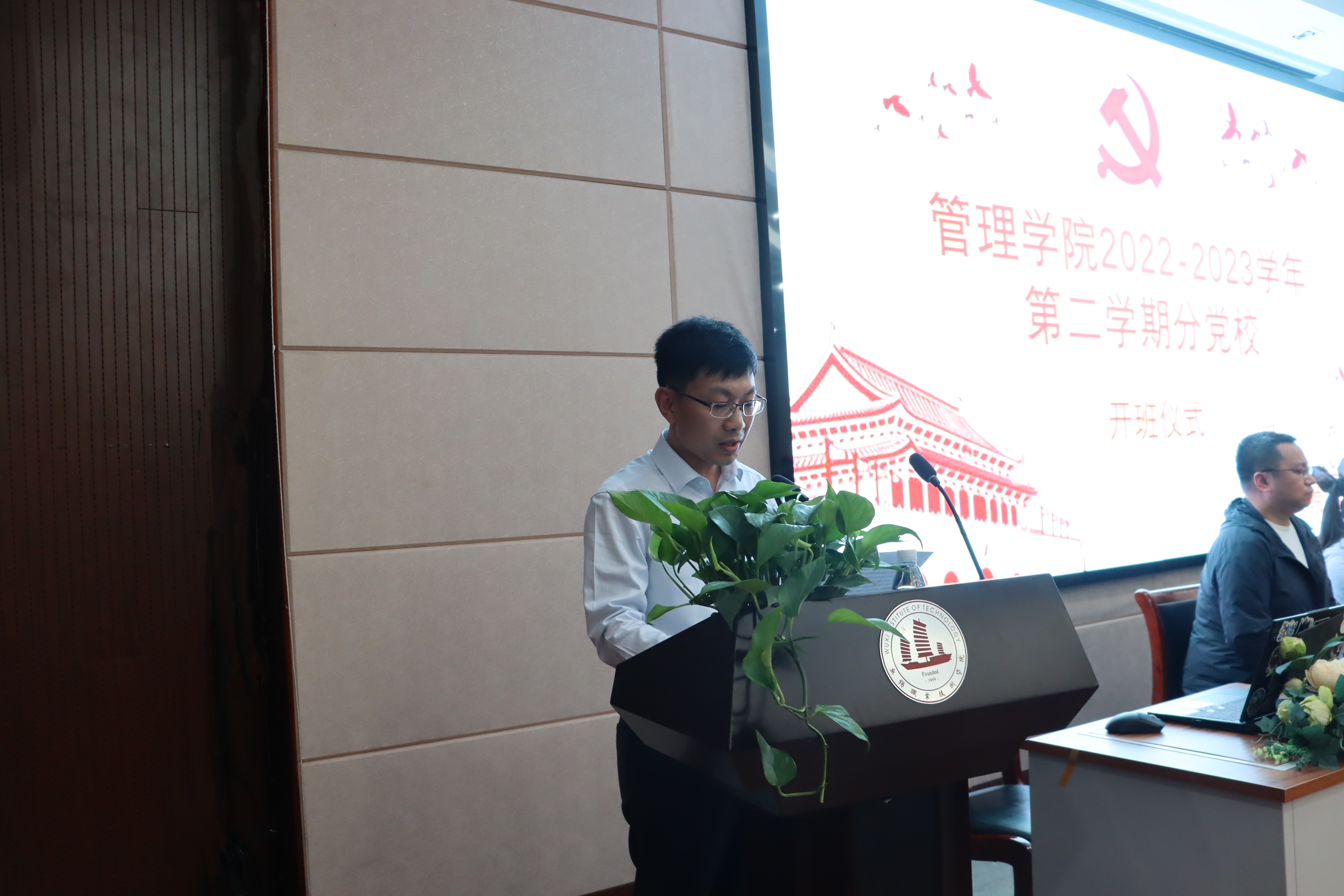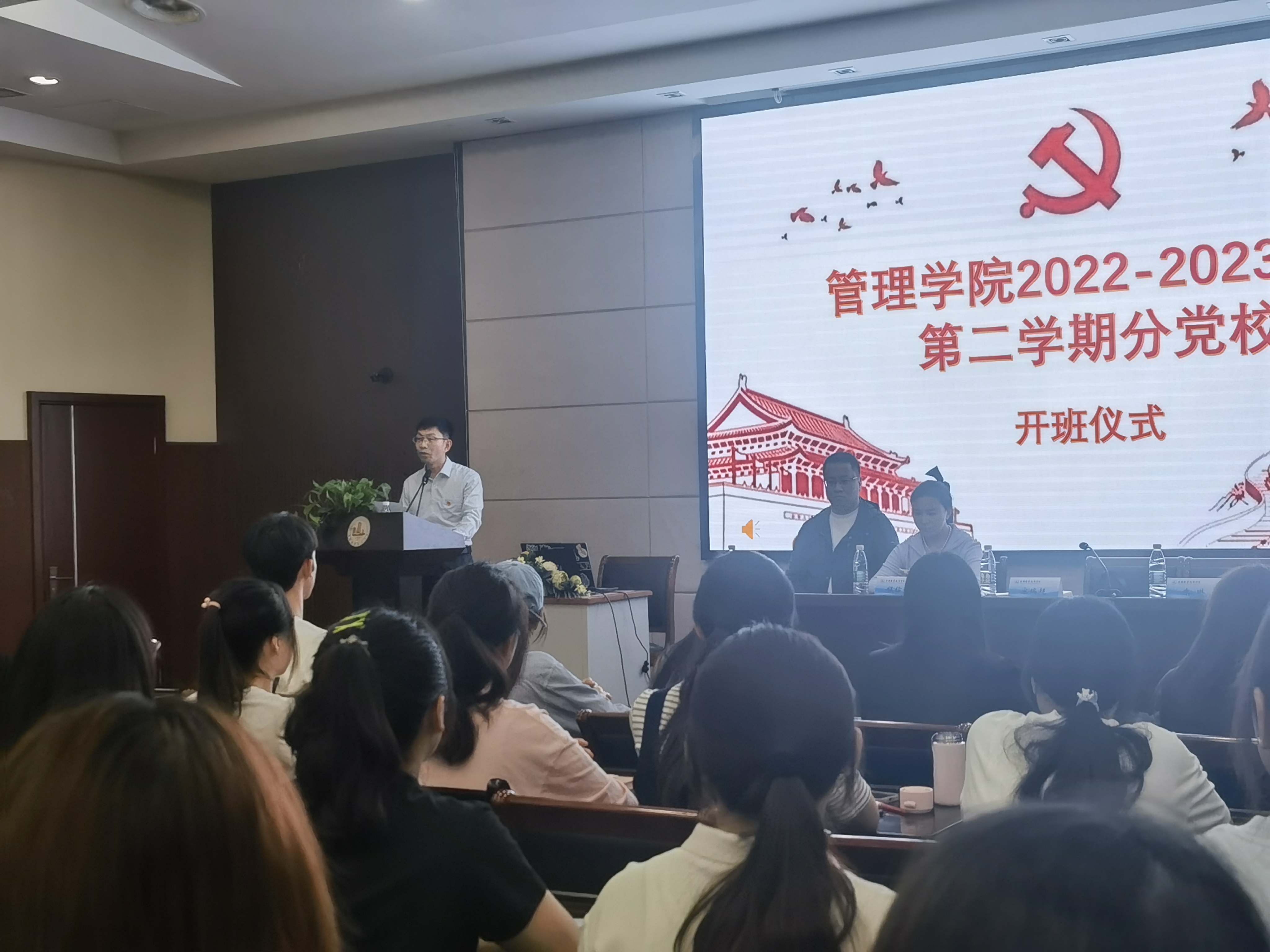 4月18日下午,管理学院分党校在国教二楼报告厅举行了分党校开班仪式。学院党总支书记宋瑞超、学生党支部书记朱琳、辅导员及全体积极分子共同参与了本次活动。