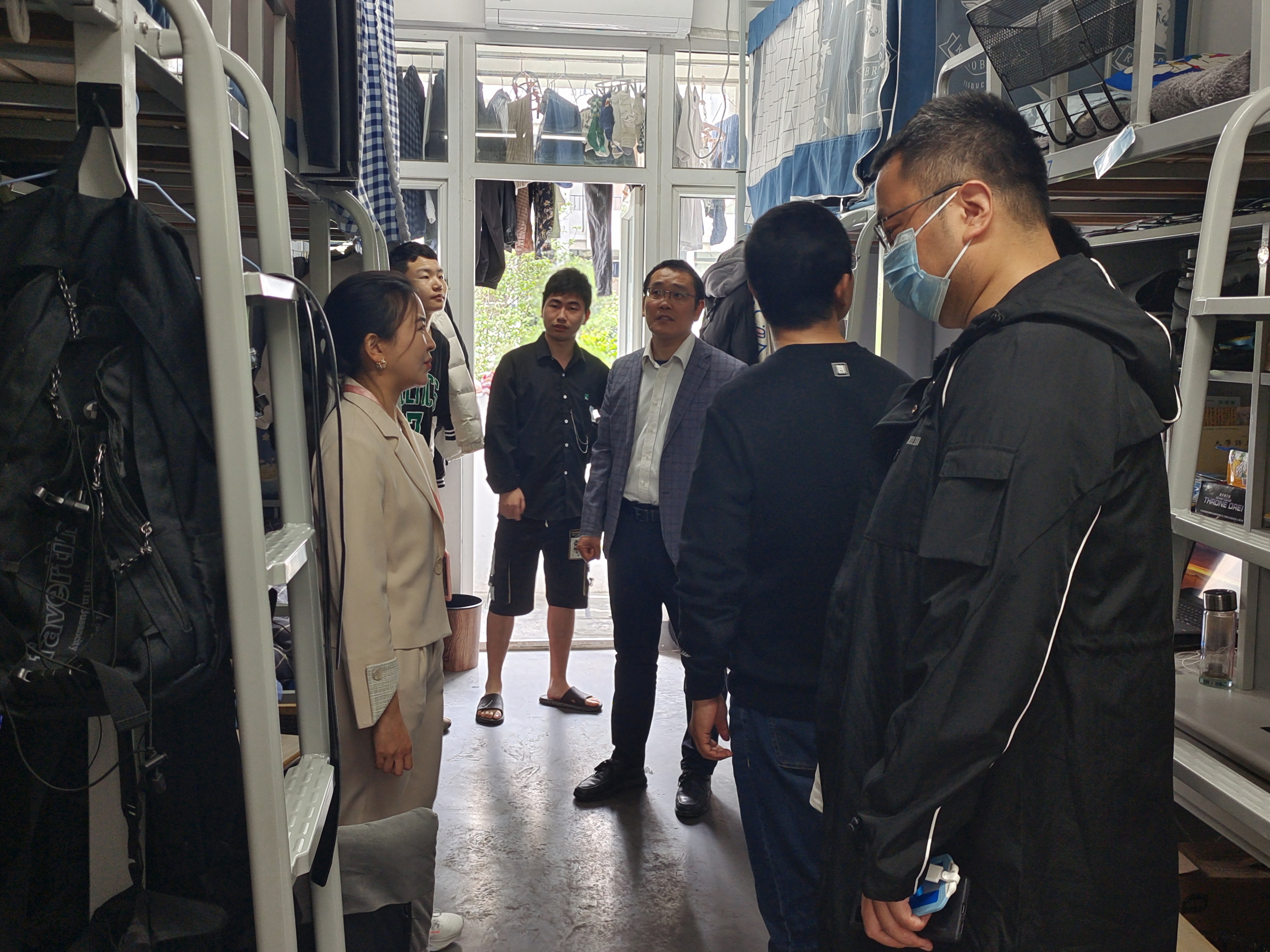 为进一步推进“一站式”学生社区建设,营造积极向上的宿舍文化氛围和和谐奋进的育人环境,4月21日,管理学院党政领导班子带领学院全体辅导员深入学生宿舍,走访看望在校学生。