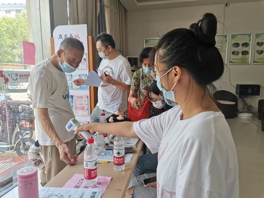 来自工商管理41932的钱波,自8月1日起主动协助当地工作人员进行信息登记和人员体温检测,做好消毒工作。