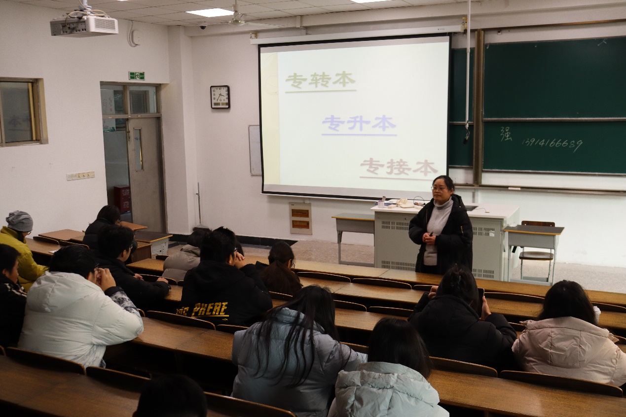 在讲座中,强英诞老师首先介绍了目前专转本通过率以及报名相关的具体事宜。之后具体介绍了专转本、专升本、专接本三大学历提升途径,详细介绍了三种途径的区别与各自的优势。最后,强英诞老师还以公共事业管理学士学位为例做解释说明,为同学们提供了一个可供参考的模式模板,使得在场同学对于自身的优势与劣势有着更加理性的认知。