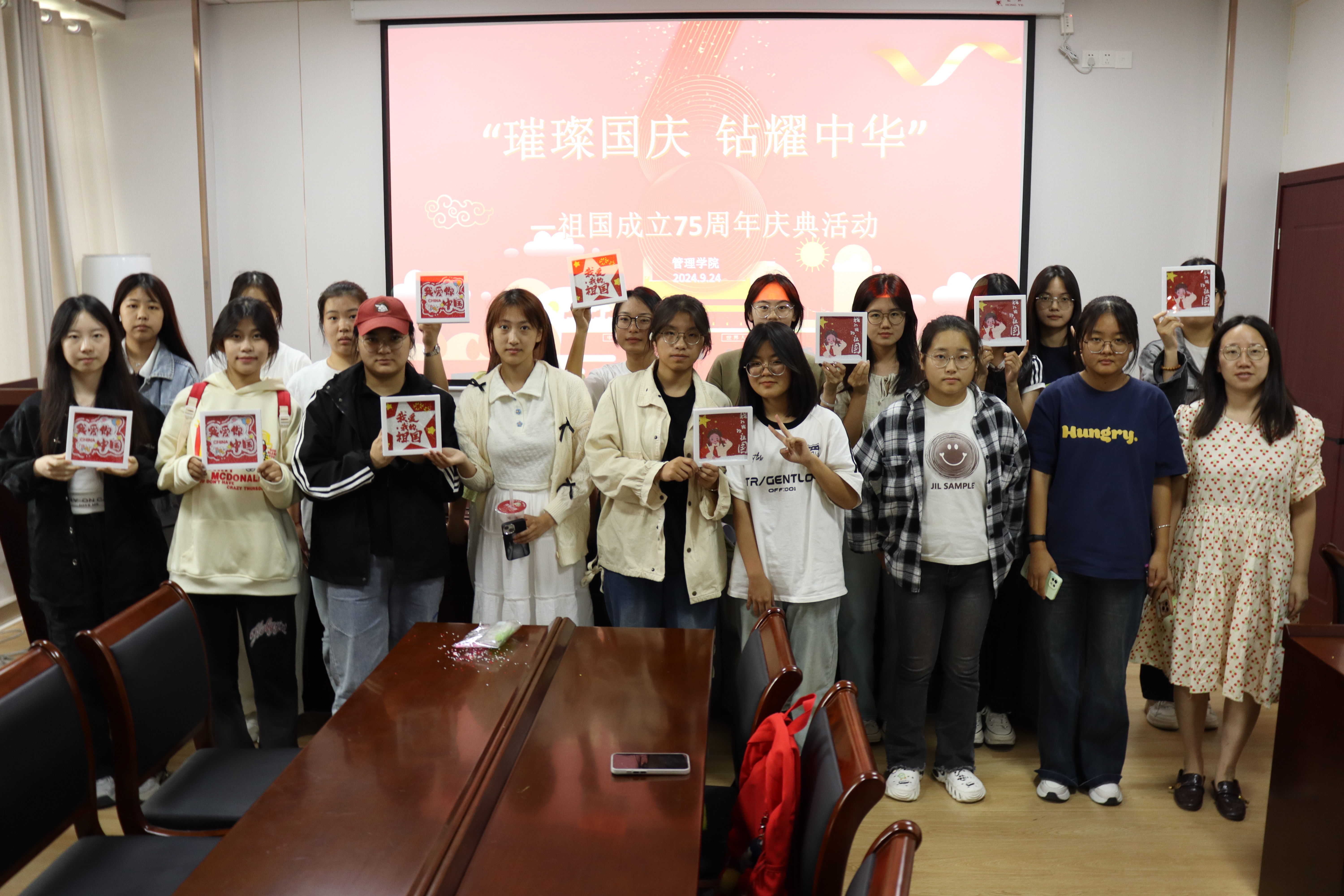 随着秋风轻拂,国庆节的脚步悄然而至。为了庆祝新中国75周年华诞,并培养学生的爱国主义情怀,管理学院于9月24日下午在明德楼315会议室举办了主题为“璀璨国庆,钻耀中华”的活动。这个特殊的日子里,师生们齐聚一堂,用一颗颗闪亮的钻石,共同绘制出一幅幅美丽的图画,献上对祖国最真挚的祝福。