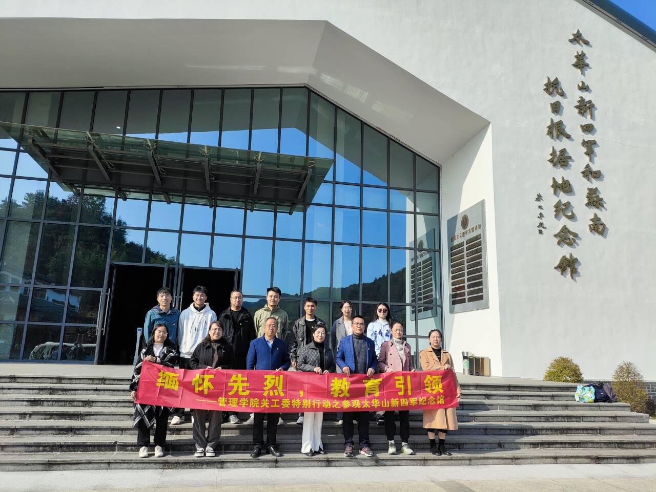 为贯彻高校立德树人的根本任务,充分发挥“五老”教师的传、帮、带作用,进一步促进关工委工作与党建工作的深度融合,11月23日,管理学院关工委赵萍老师带领学院党员老师和学生代表一行,前往无锡宜兴太华山新四军和苏南抗日根据地纪念馆进行参观学习。此次活动旨在通过实地参观,深入了解新四军在苏南地区抗日斗争的英勇历史,进一步传承红色基因,弘扬爱国主义精神。