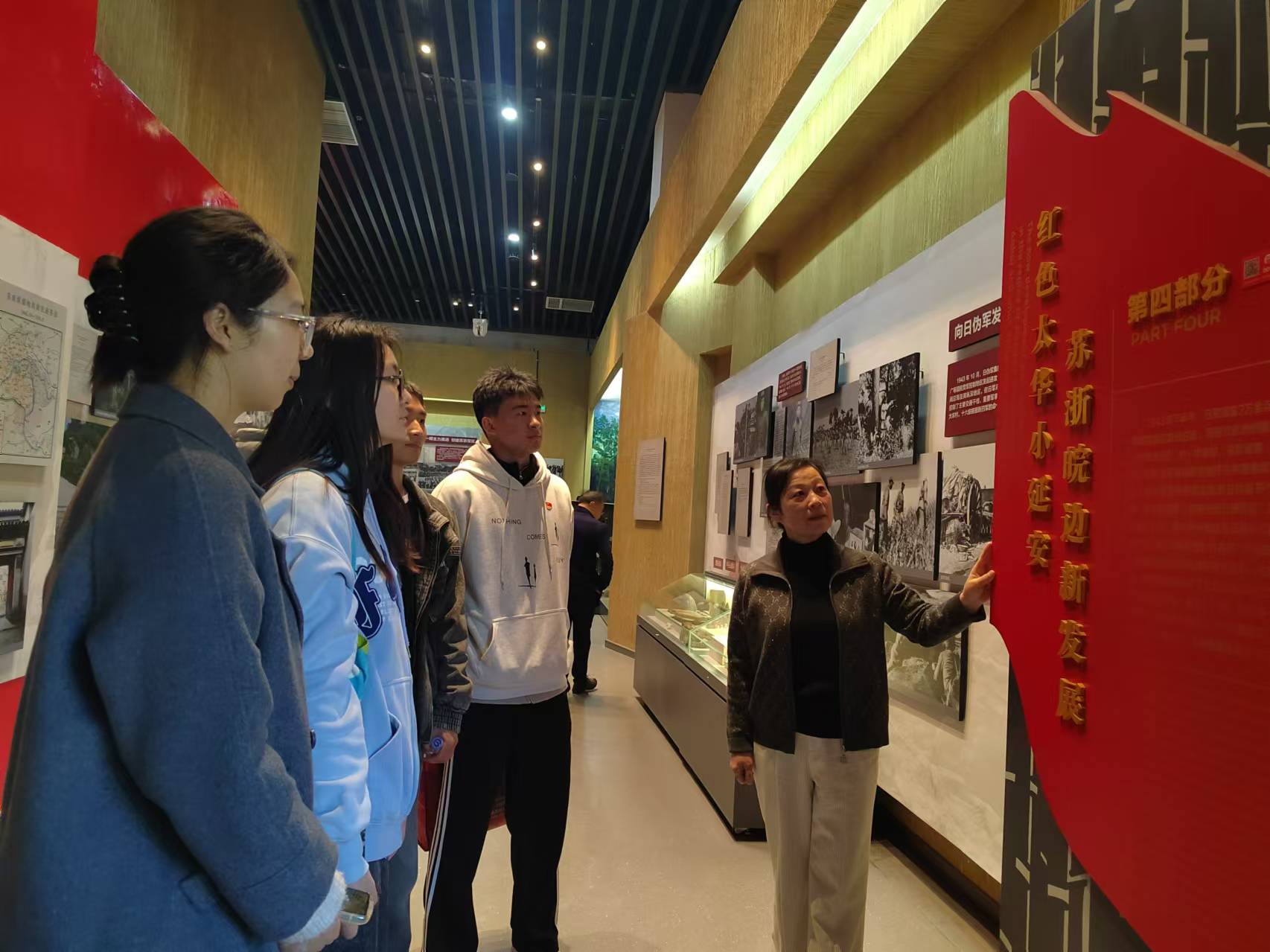 太华山新四军纪念馆是苏南地区重要的革命历史教育基地,馆内陈列了大量珍贵的历史文物和图片资料,生动再现了新四军在苏南地区开展抗日斗争的艰苦历程。参观过程中,师生们认真聆听讲解员的介绍,详细了解了新四军在苏南地区建立抗日根据地、开展游击战争的历史背景和重要意义。