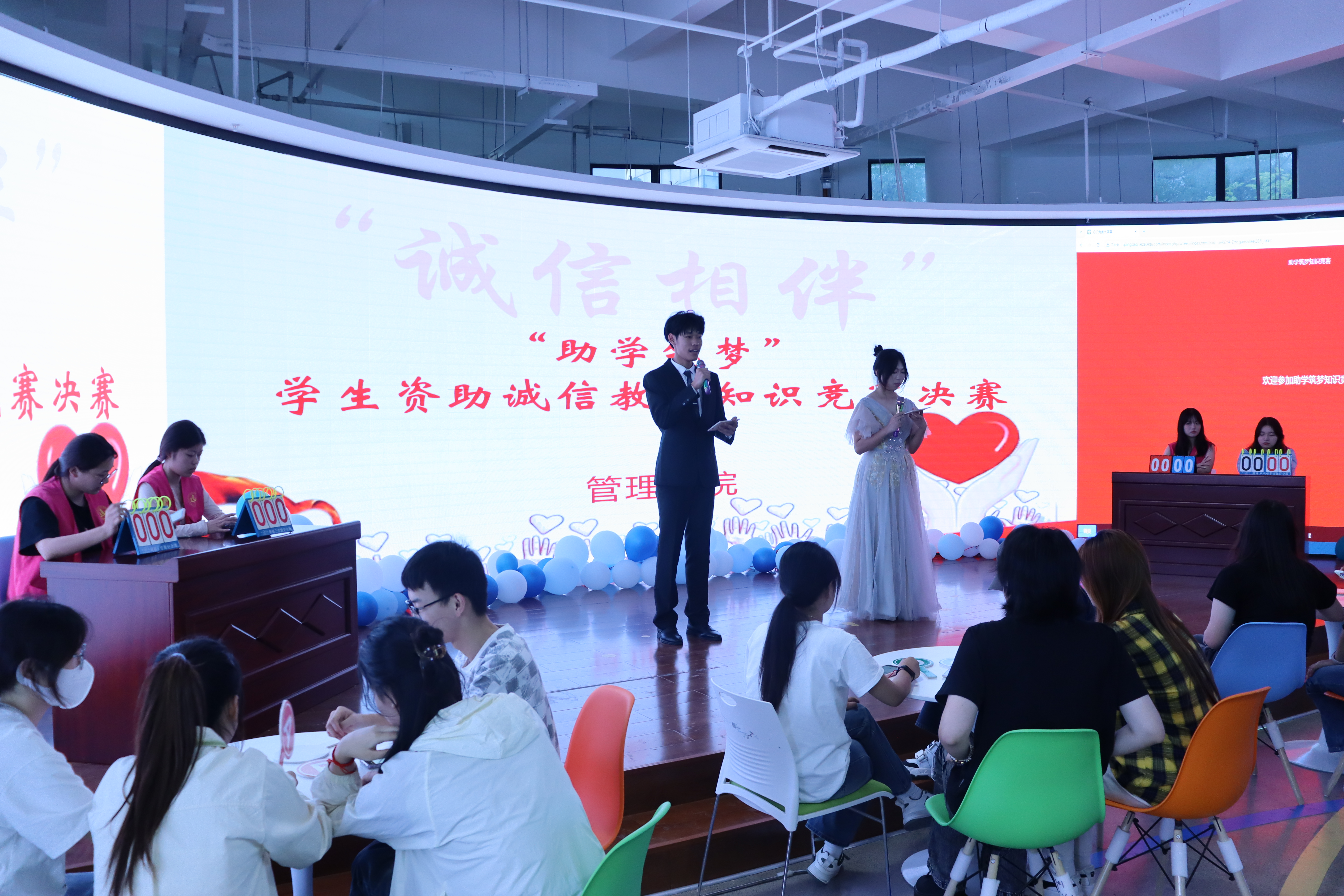 为认真贯彻落实党的二十大关于“完善覆盖全学段学生资助体系”的重要决策部署,深化资助育人工作,加强同学们对国家及学校资助政策的认知,增强当代大学生诚信意识和责任担当。2024年6月18日晚,管理学院联合双创学院,于产教一期共同开展以“诚信相伴·助学筑梦”为主题的学生资助政策宣讲暨诚信教育知识竞赛活动。
