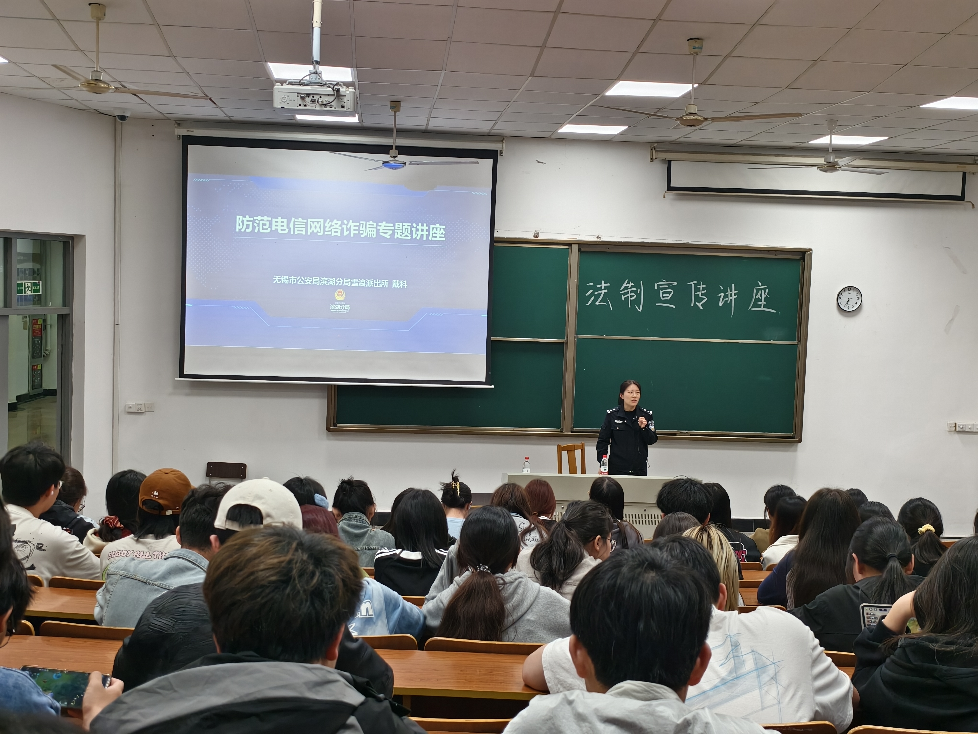 为了全面贯彻习近平法治思想和习近平总书记关于教育的重要指示精神,进一步加强大学生的法治教育和网络安全意识,管理学院特别邀请了雪浪派出所戴科民警,于2024年4月29日下午,在j4-101教室举办了一场主题为“防范诈骗、共筑安全”的反诈宣传知识讲座。此次活动旨在帮助学生提高识别和防范网络诈骗的能力,进而形成全校范围内的安全防线,保护每位学生的财产和信息安全。