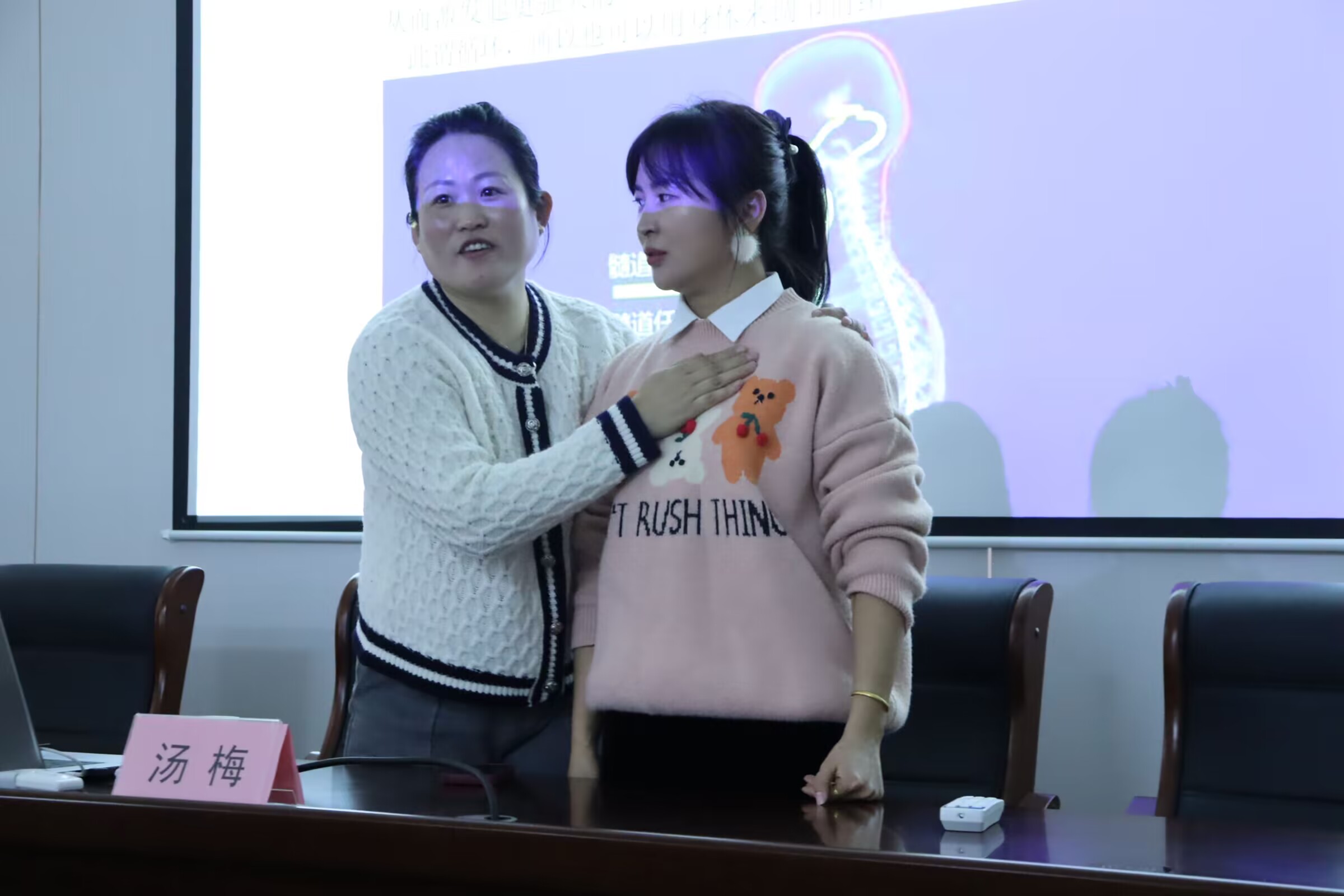 讲座过程中,汤医生热情互动,解答女职工们关于情绪调理和经络养生的各种疑问,“现身说法”为每位女教师们阐明如何经络按摩、如何调整呼吸等方式来缓解压力、改善情绪和保持身心健康的方法。讲座结束后,大家纷纷表示对情绪与经络的关系有了更深入的了解,也学到了一些实用的健康养生方法。