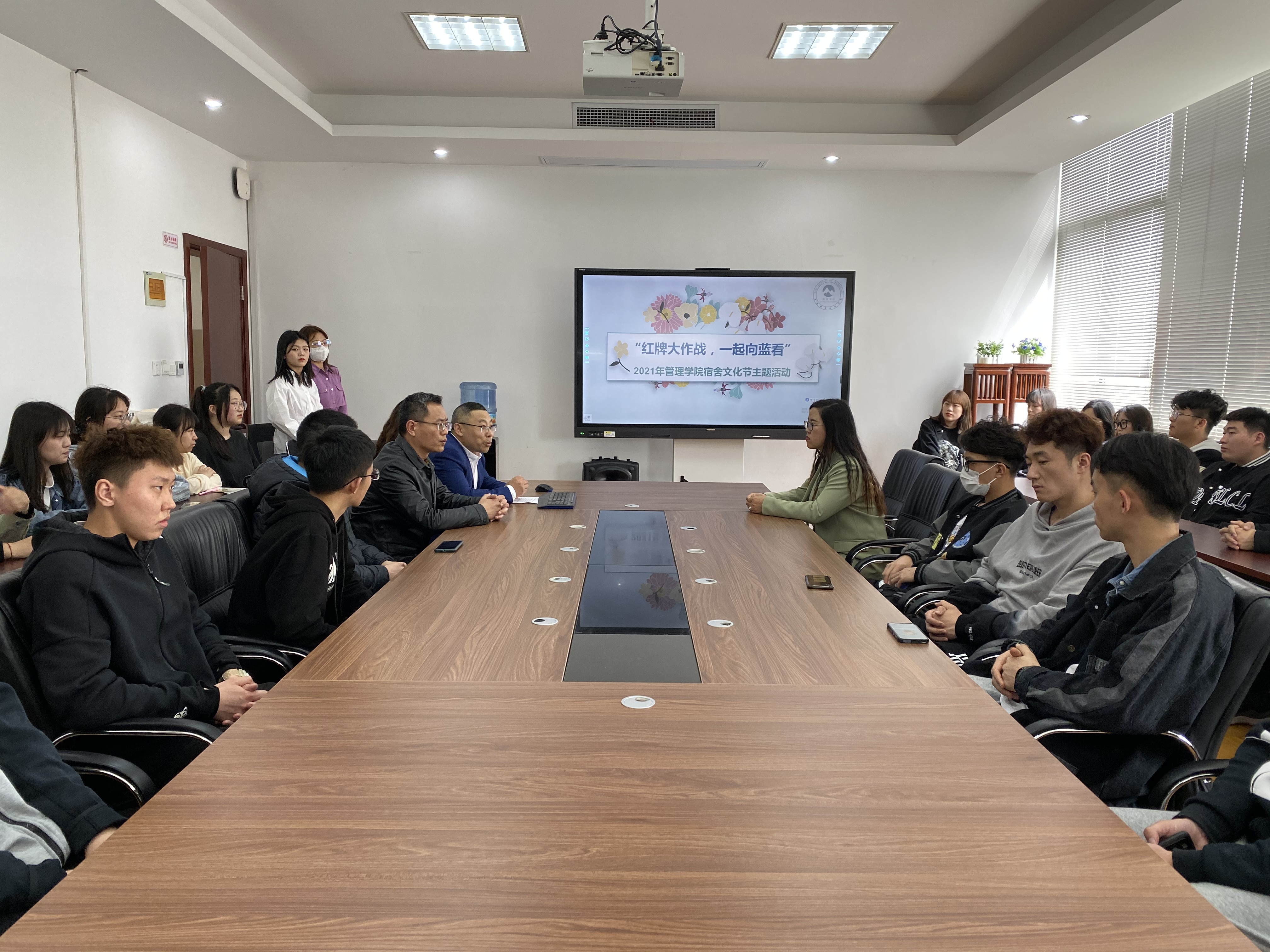 为积极响应创建文明城市的号召,进一步提升我院学生宿舍文化品位,丰富宿舍文化生活,营造“乐思、乐学、乐善、乐创、乐业”的校园环境,结合我校学生工作处制定的“消灭红牌行动”实施方案,管理学院于本学期组织开展“红牌大作战,一起向蓝看”宿舍文化节主题活动。3月30日中午,主题活动动员会议在教1-415顺利召开,我院党总支书记苗勇、学生办辅导员老师和行动组学生志愿者一起参加了会议,特邀学生处宿舍管理科花树洋老师到现场指导工作。