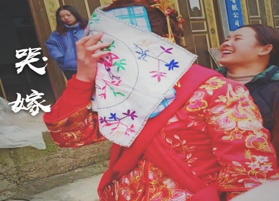 哭嫁:亦称“哭出嫁”、“哭嫁囡”、“哭轿”等。是汉、土家、藏、彝、壮、撒拉等民族的传统婚姻习俗,图为袁双燕同学拍摄的土家族姑娘出嫁时的场景。