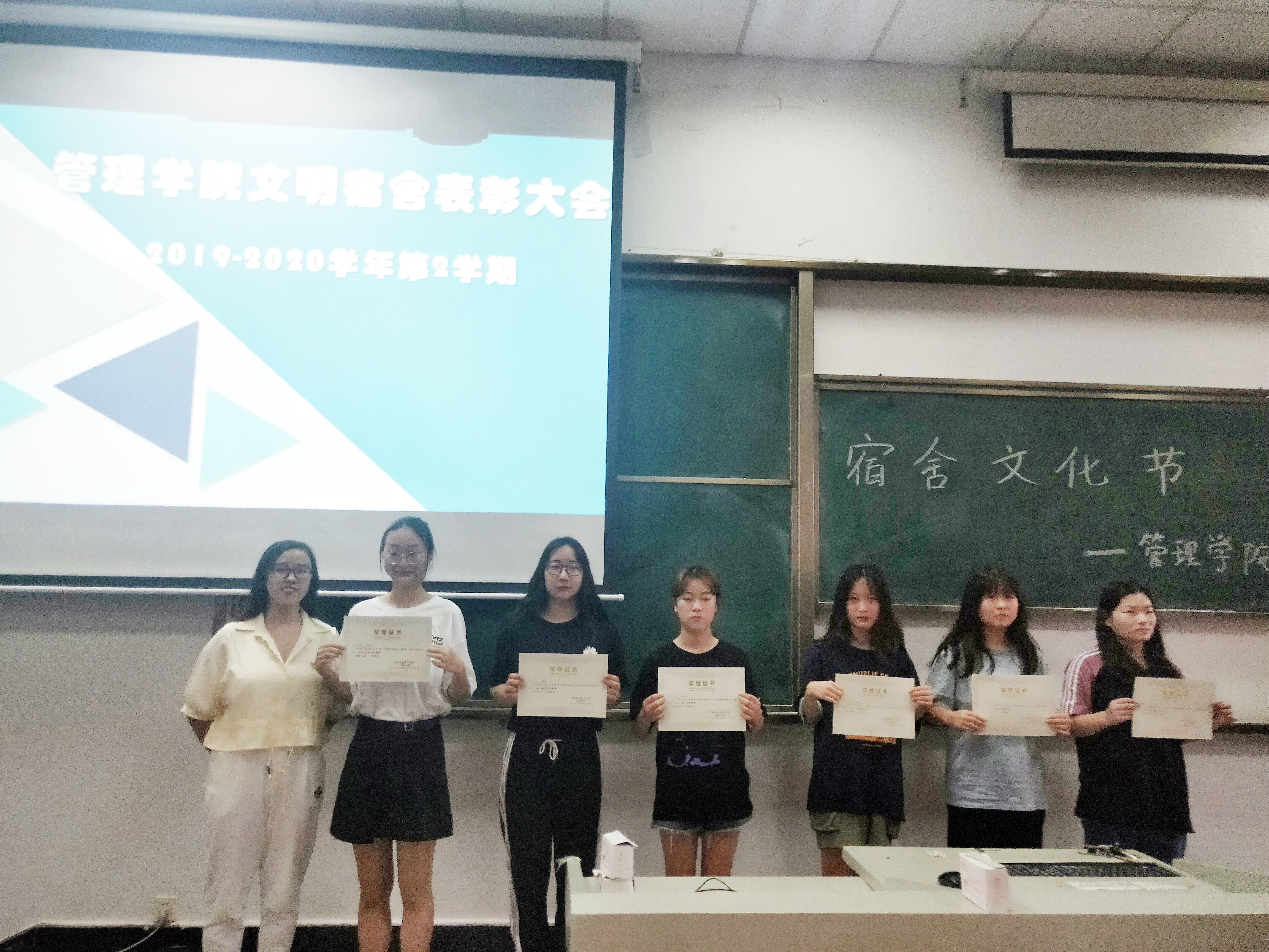 为进一步提升宿舍文化品位,丰富校园文化生活,营造乐思、乐学、乐善、乐创、乐业的育人环境,培养德智体美劳全面发展的时代新人,7月1日,正逢中国共产党建党99周年之际,管理学院在教4-101组织开展2019-2020学年第2学期文明宿舍表彰大会。学工办辅导员朱琳、程镭鳕、刘世强、刘婷婷老师和各班级学生干部代表以及受表彰的宿舍成员共同参加了活动。