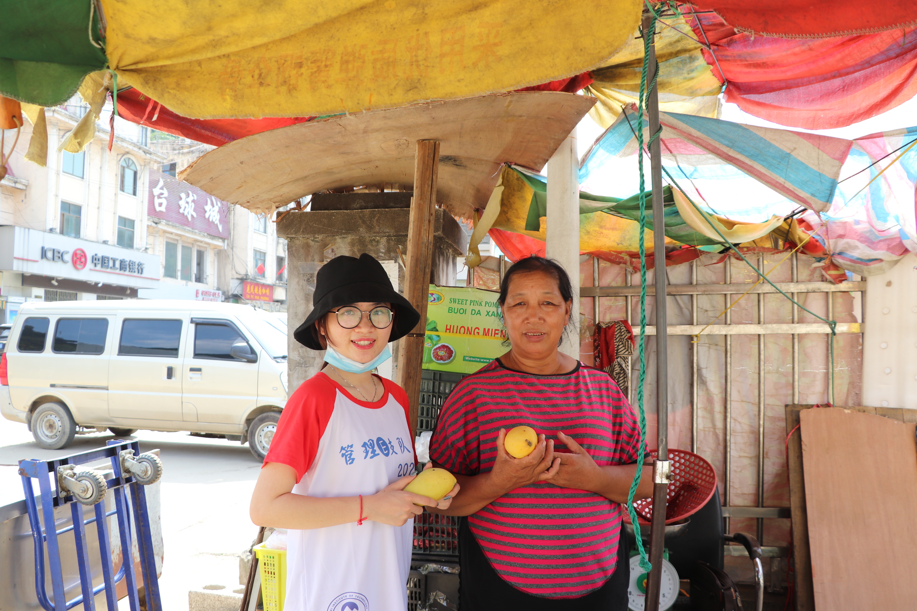 8月3日,在结束了吉林泉阳站的志愿服务活动之后,管理E支队来到了广西凭祥开启新一站寻访之旅。广西凭祥口岸于1952年开通,是国家的一类口岸,也是广西唯一的边境铁路口岸,是中国通往东盟便捷的铁路大通道,更是链接欧亚大陆与东盟的铁路大陆桥的桥头堡。当天我们到达凭祥边境口岸水果市场时,街道上没有了以往车水马龙的景象而显得有些冷冷清清的,整个街道上只有一位头带遮阳草帽的阿婆坐在街边,伫立在自己的水果摊旁,如此衬得这条本就宽阔的街道更加空旷。