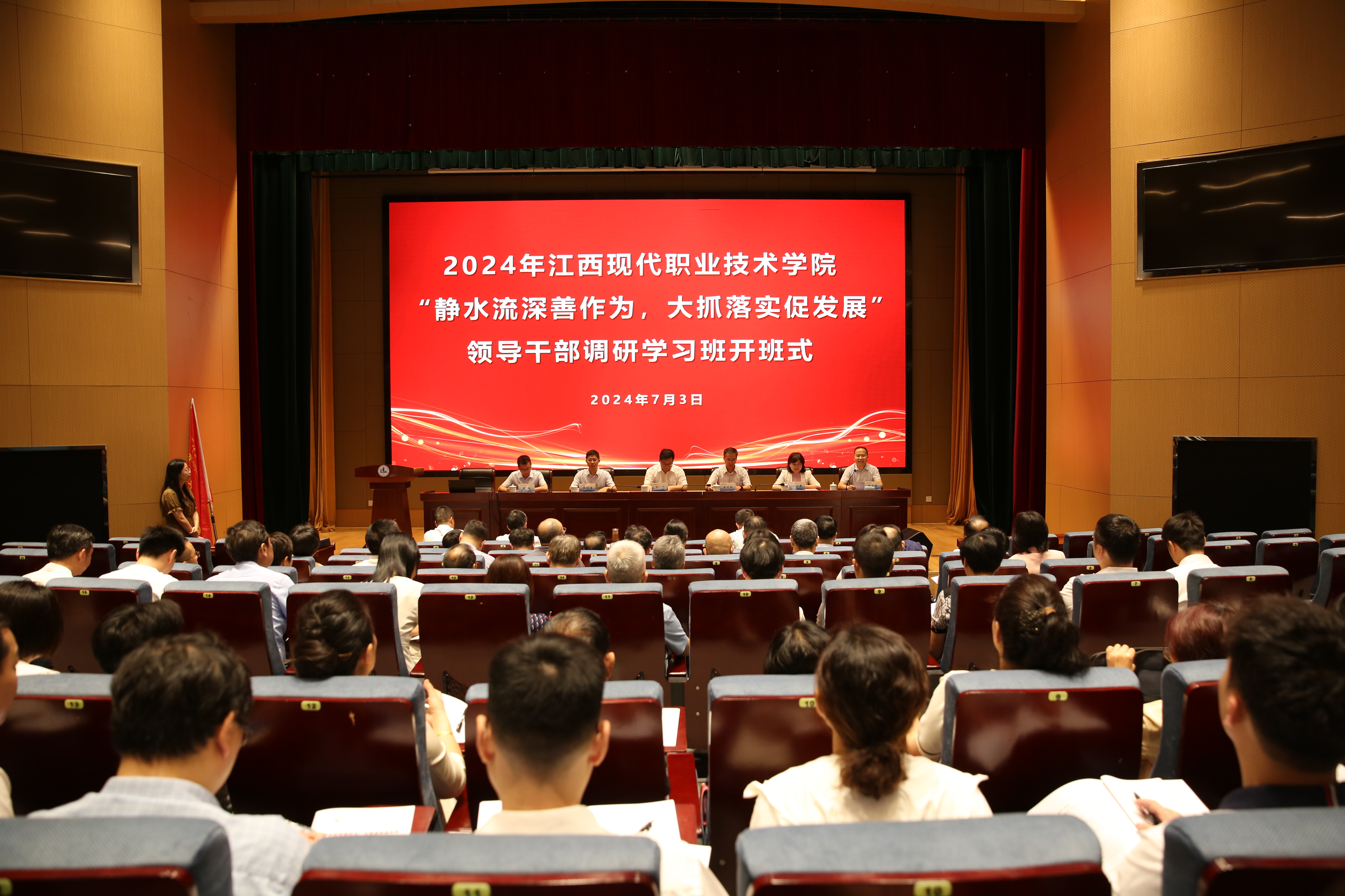 7月3日上午,由江西现代职业技术学院委托、无锡职业技术学院承办的“静水流深善作为、大抓落实促发展”2024年江西现代职业技术学院领导干部调研学习班开班仪式在厚德楼辅楼一楼报告厅举行。由江西现代职业技术学院党委书记陈飞带队的学院领导班子、中层干部和教师代表等一行近80人参加了本次开班仪式。