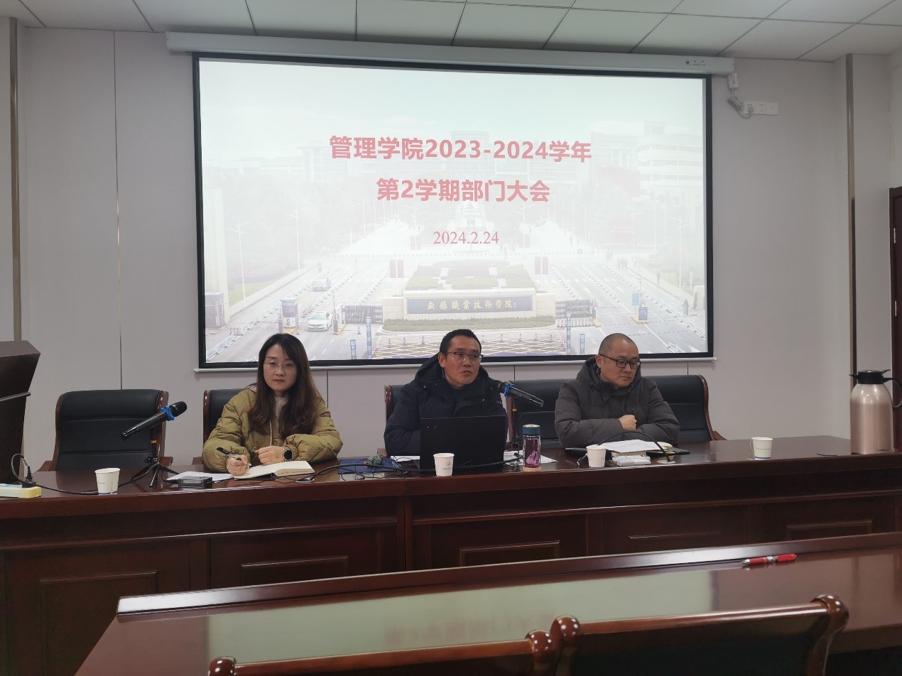 2024年2月24日下午,管理学院2023-2024学年第二学期部门大会在明德楼A-404会议室召开,会议由管理学院党总支书记、院长俞林教授主持,管理学院全体教职工出席了本次会议。