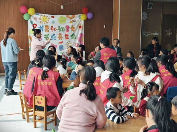 最后,管理学院的老师们亲自为孩子们送上精心挑选的绘本,每一本书都是对孩子们知识与智慧的馈赠。大家在赠书时还亲切地与孩子们交谈,鼓励他们多读书、读好书,希望书籍能成为他们成长道路上的良师益友。