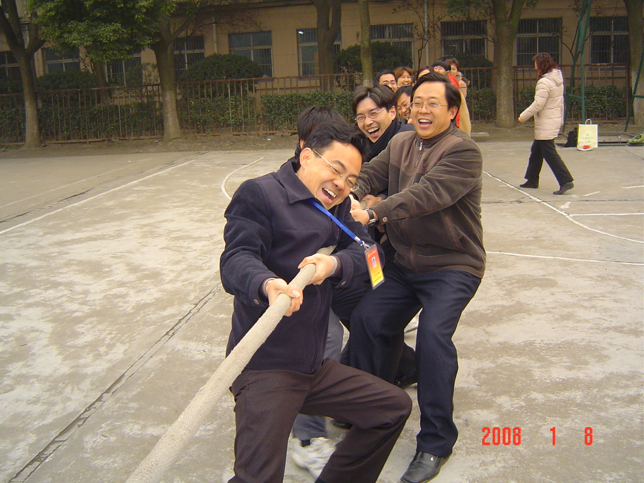 时值隆冬,室外虽然寒风凛冽,但抵挡不住经管学院教师参与体育比赛的热情。1月8日下午3:30,由经管学院分工会举办的教师体育比赛在中桥校区篮球场举行。 比赛项目主要有拔河与排球。拔河比赛是工商管理系和经济贸易系教师组成的两支男女混合队互相 PK ;排球比赛则由各部门老师自由组成的两支男队进行较量。比赛中,老师们使出了浑身解数,个个生龙活虎,几番拼搏,大家都收获了很多乐趣。