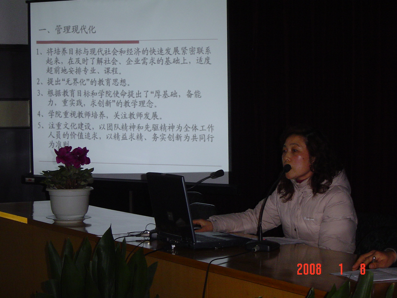 随着示范项目开展,师资培训力度加大,经管学院07年度已有多名教师赴美国、澳洲、新加坡等国有关学院进行学术交流与专业培训。为了总结交流培训的经验,借鉴先进的教学理念和办学模式,以利于经管学院的教育改革与专业发展,经管学院于元月8日下午2 :30在工业中心六楼会议室举行了全院性的教师集中教研活动。 会上首先由乔毅、邹笑言、赵萍、丁正荣、柏景岚、蒋宏成、张玲等7位老师介绍赴新加坡南洋理工学院培训的体会。他们分别从现代学校管理理念、人力资源、专业课程设置、学生管理、校企合作等方面介绍新加坡南洋理工学院的做法,阐述对学校和个人的借鉴与启迪。接着郑爱翔、华雅琴两位老师分别介绍了去澳洲和美国培训的相关内容和体会。