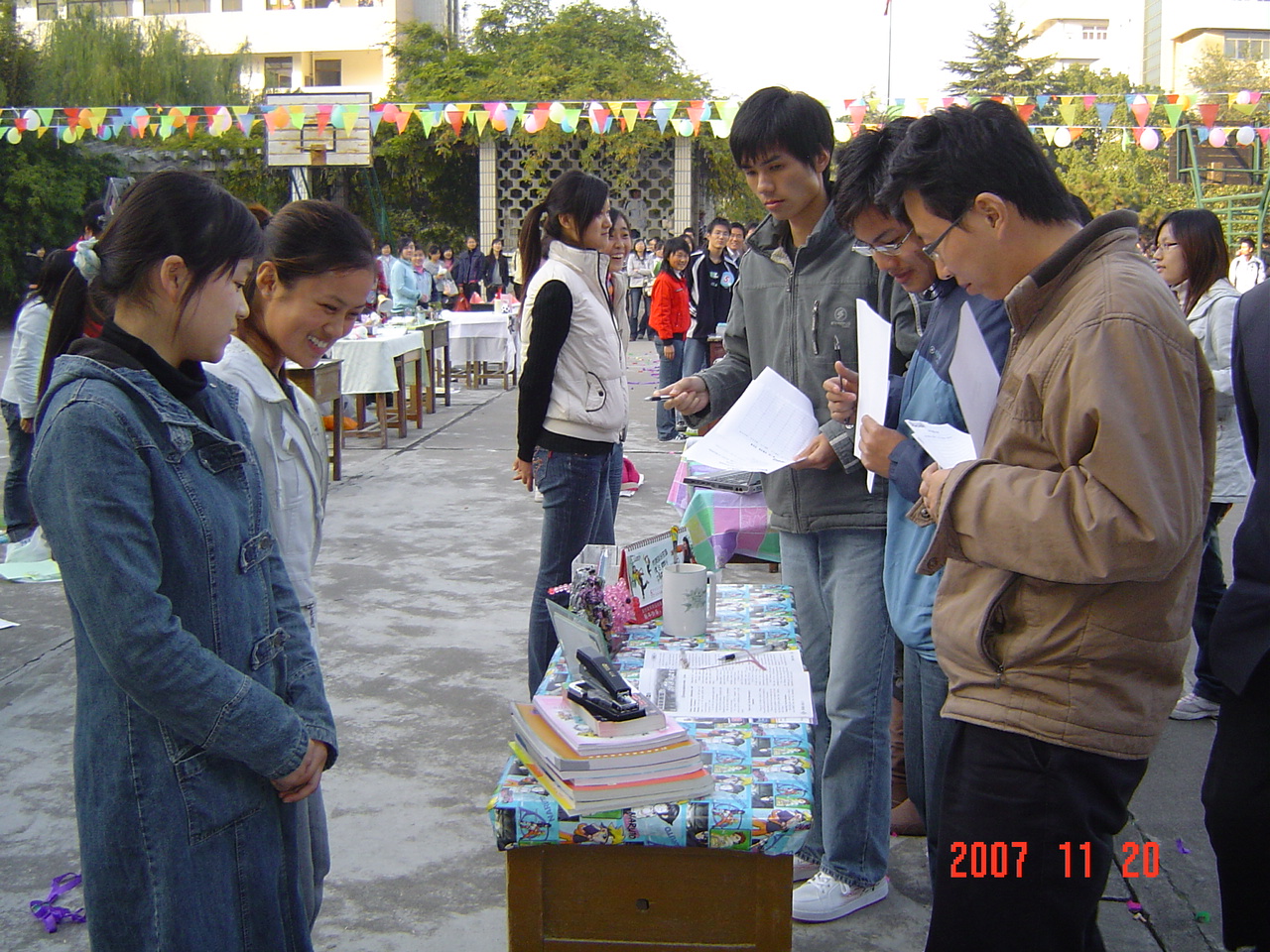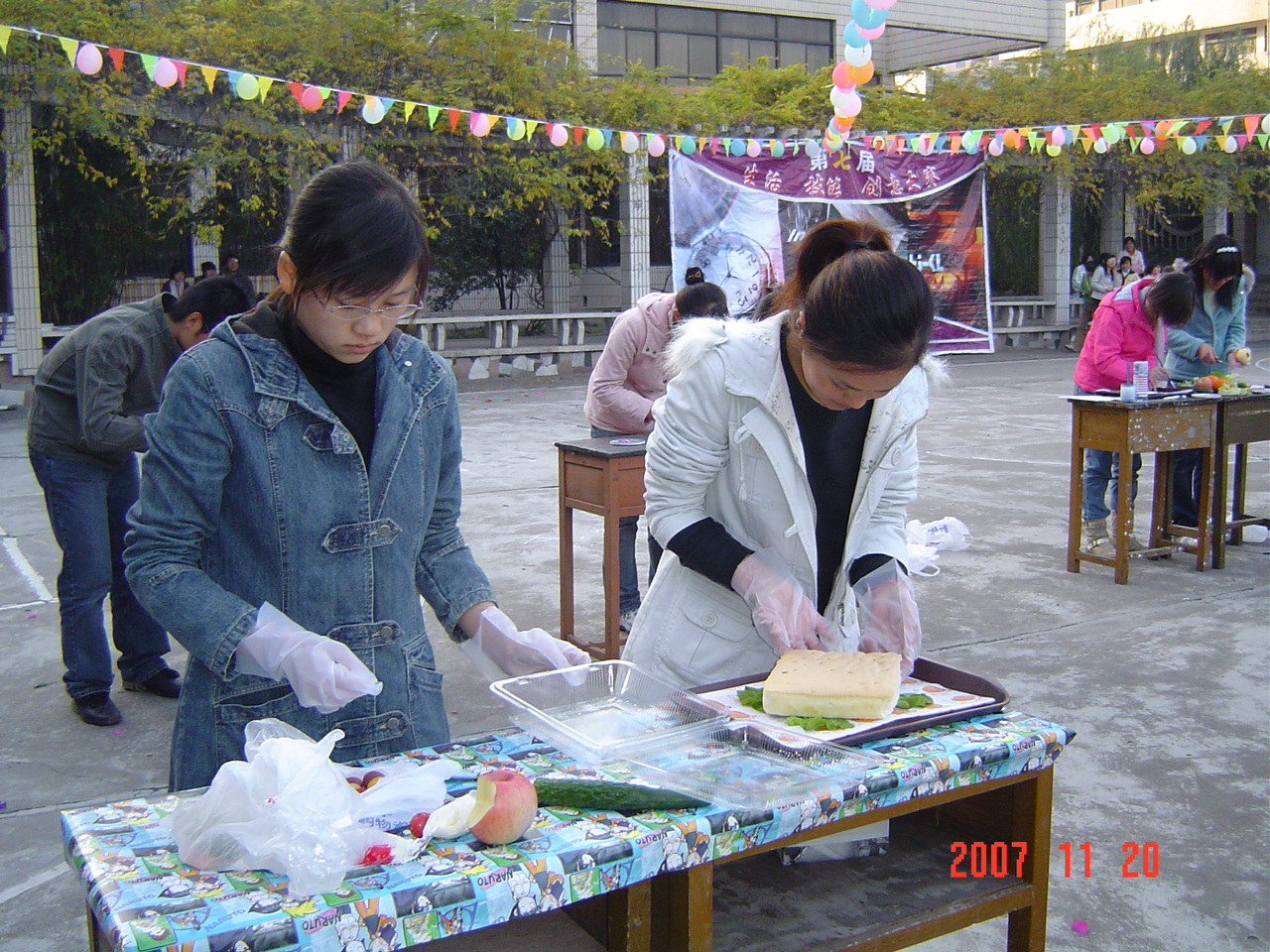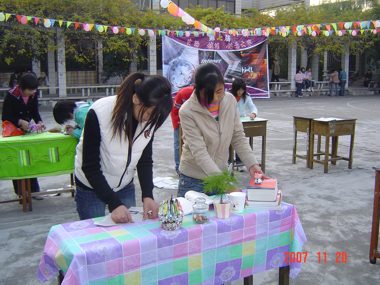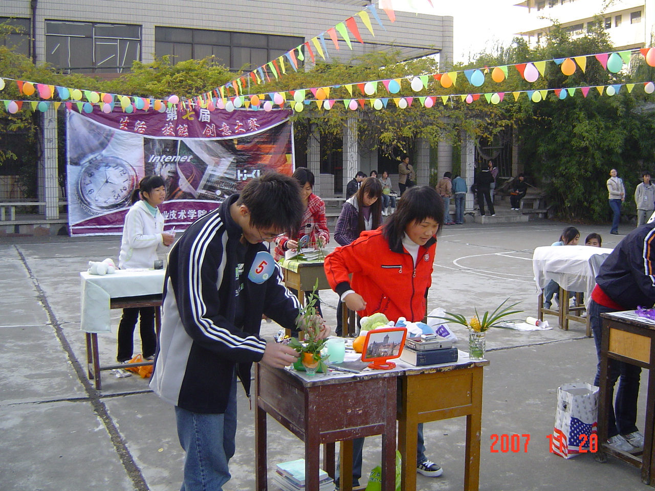 11月20日下午3 :30 ,中桥校区举办的“第七届生活技能创意大赛”在西篮球场顺利举行。这次生活技能创意大赛共有30组60人参加,大赛共设 “布置书桌”,“拼盘”,“设计徽章”等三个项目。分别以“生活的乐趣无处不在,善于发现,善于动手,让书桌也明亮起来”;“祝福北京2008奥运会,学习世博会创新精神”;“挑战自我,玩转技能和创新”为主题思想。各组选手们的作品设计思路清晰,创意新颖独到,效果独具美感,受到领导、老师和广大同学的好评。无锡教育电视台为这次大赛进行了现场录象,并将择日播出。