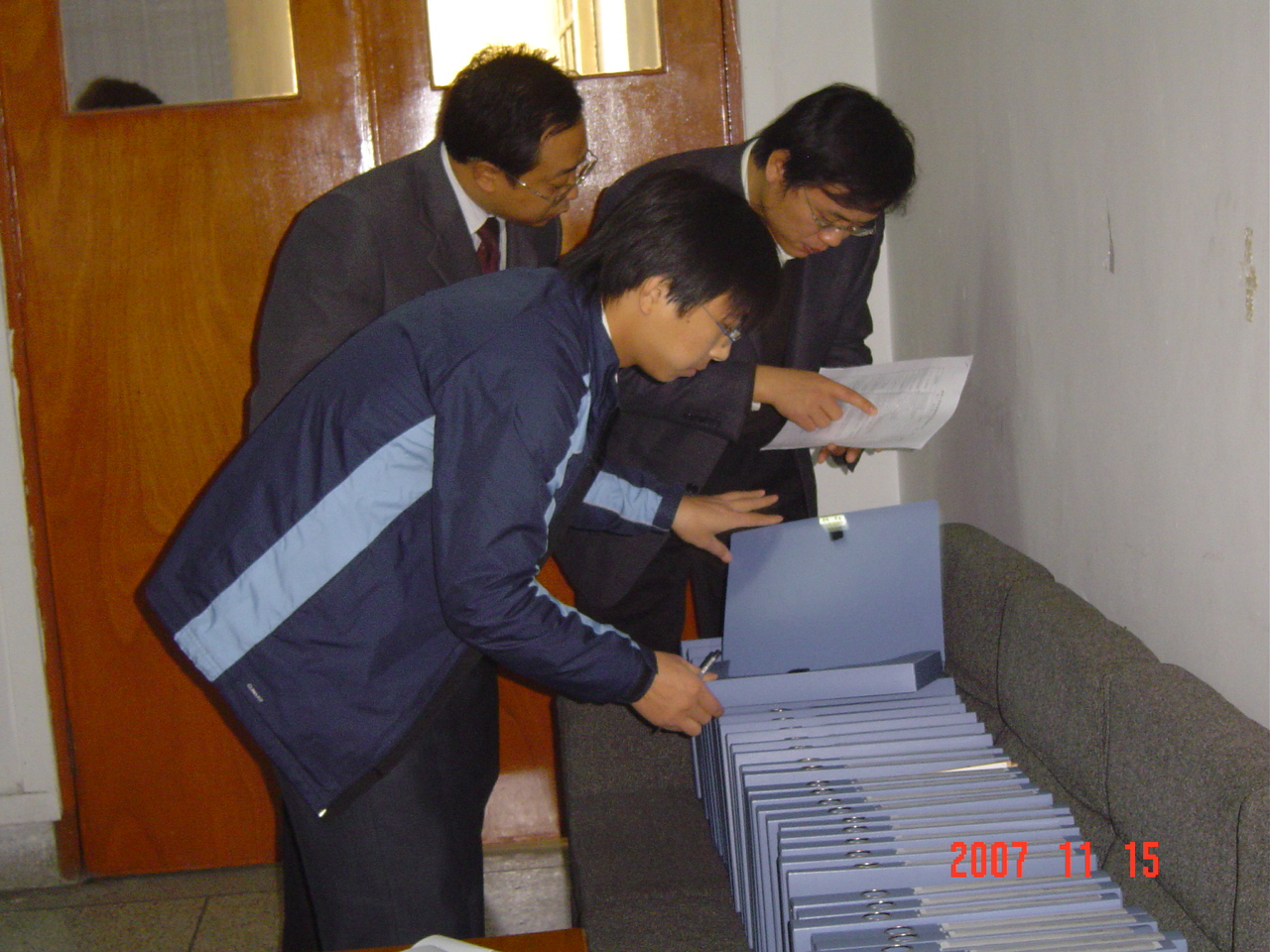 2007年11月15日 ,经济管理学院党总支在中桥校区图书馆楼二楼三会议室接受了学院检查组对“党建迎考 ”材料的第二次检查。本次检查由学院副院长谈向群带队,后勤处副处长张格物和组织干部处苗勇老师参与了检查。经济管理学院党总支副书记罗嘉军、副院长崔平和迎考工作小组成员汪志晓、乔巍等老师参加了检查汇报会。经过3个小时细致的检查汇报后,检查组对经管学院党总支的工作给予了充分的肯定。并指出在第一次检查的基础上,经管学院党总支在材料的内容充实和规范性上做了很大提高,基本完成了各个四级指标的制作。下一阶段,在前期材料完备的基础上,要做好自评报告和特色报告的撰写工作,突出特色,上挂下联,做好总院材料和分院材料的匹配工作。并建议对材料做进一步处理,使形式和内容更加完善。当日下午,经管学院党总支立即召开了整改布置工作会议,争取在月底前使所有材料达到“迎考”要求。