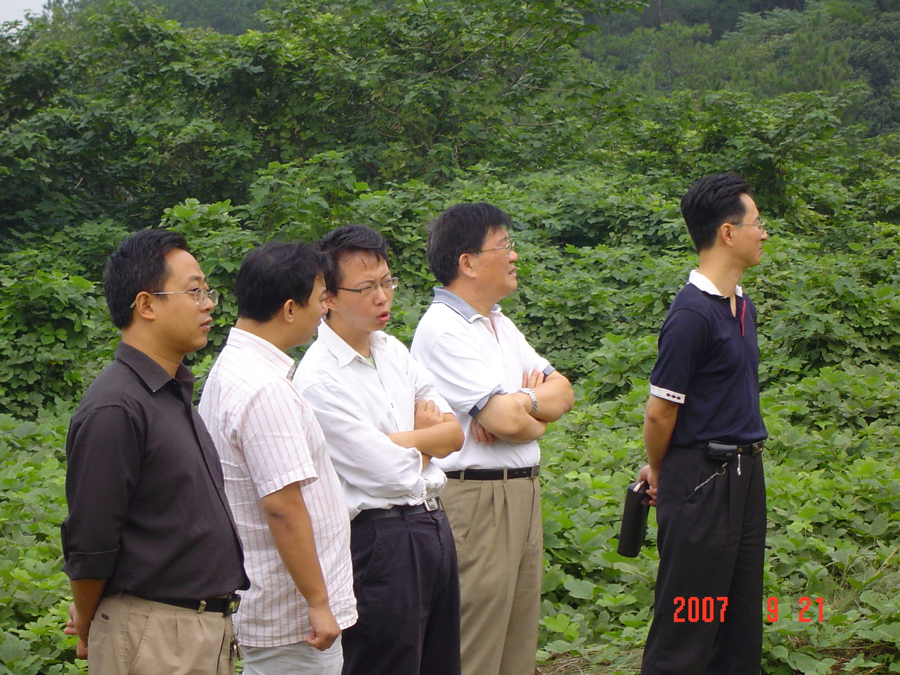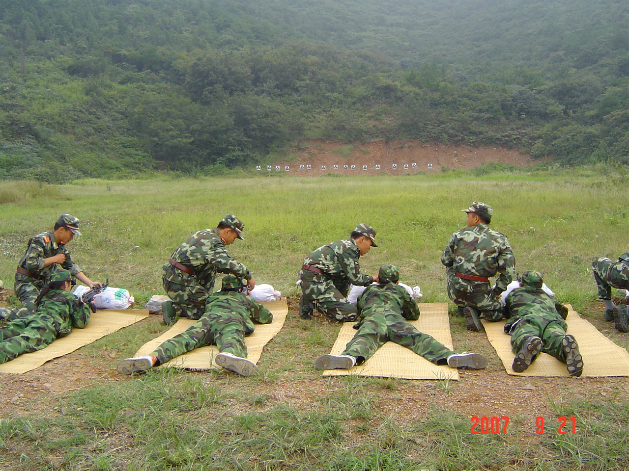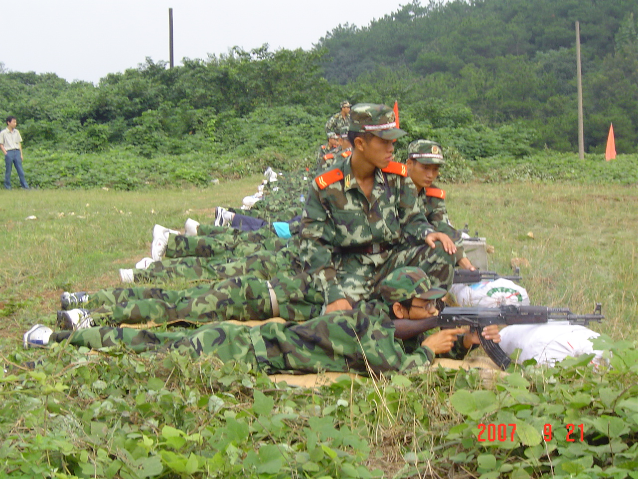 图为领导们和老师们一起在打靶现场进行指导。
