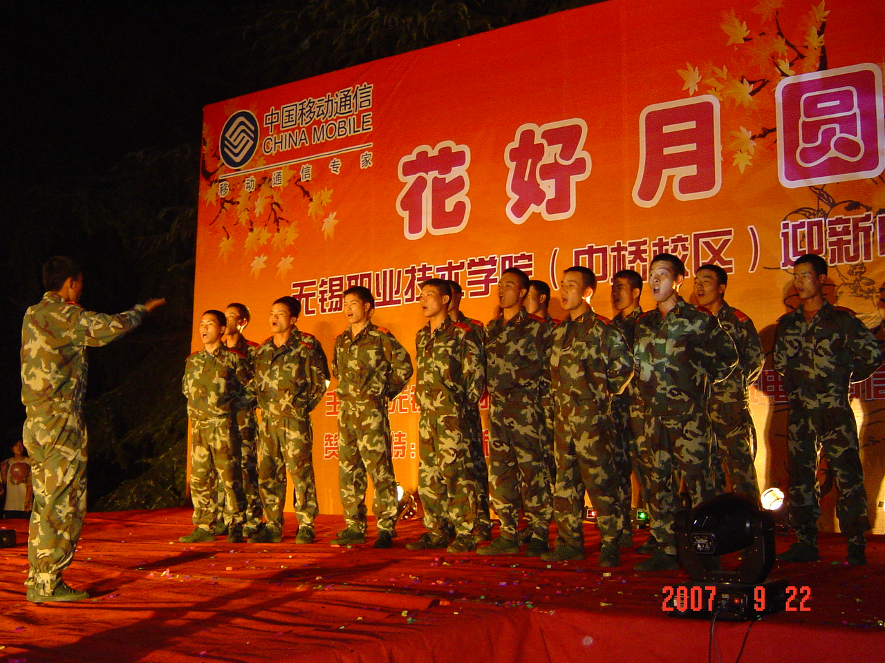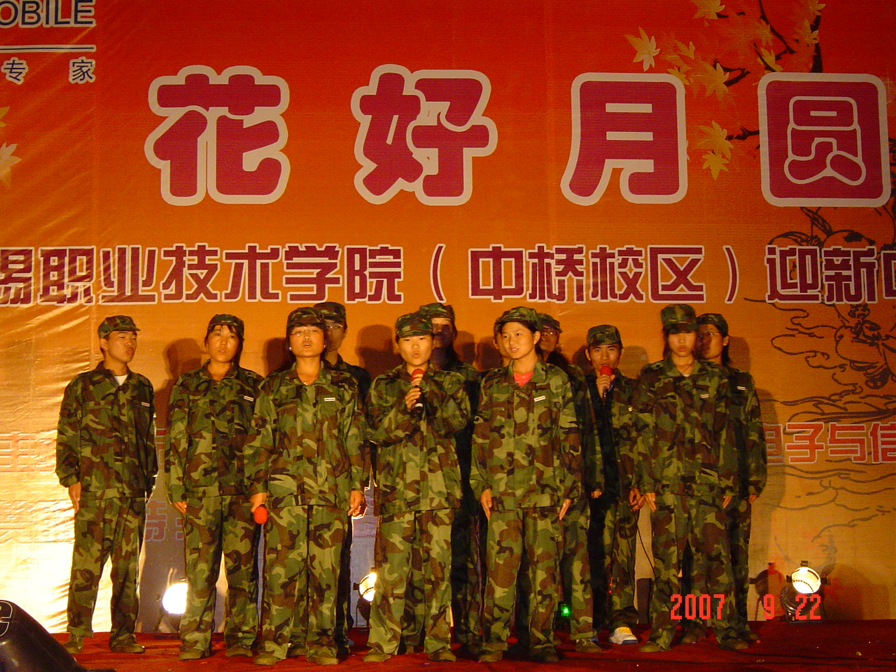 9月22日晚7点,中桥校区在东篮球场举办了题为“花好月圆”的迎新生大型中秋文艺晚会,1000余名军训学生和教官与学院领导欢聚一堂,观看了这场精彩纷呈的中秋文艺演出。