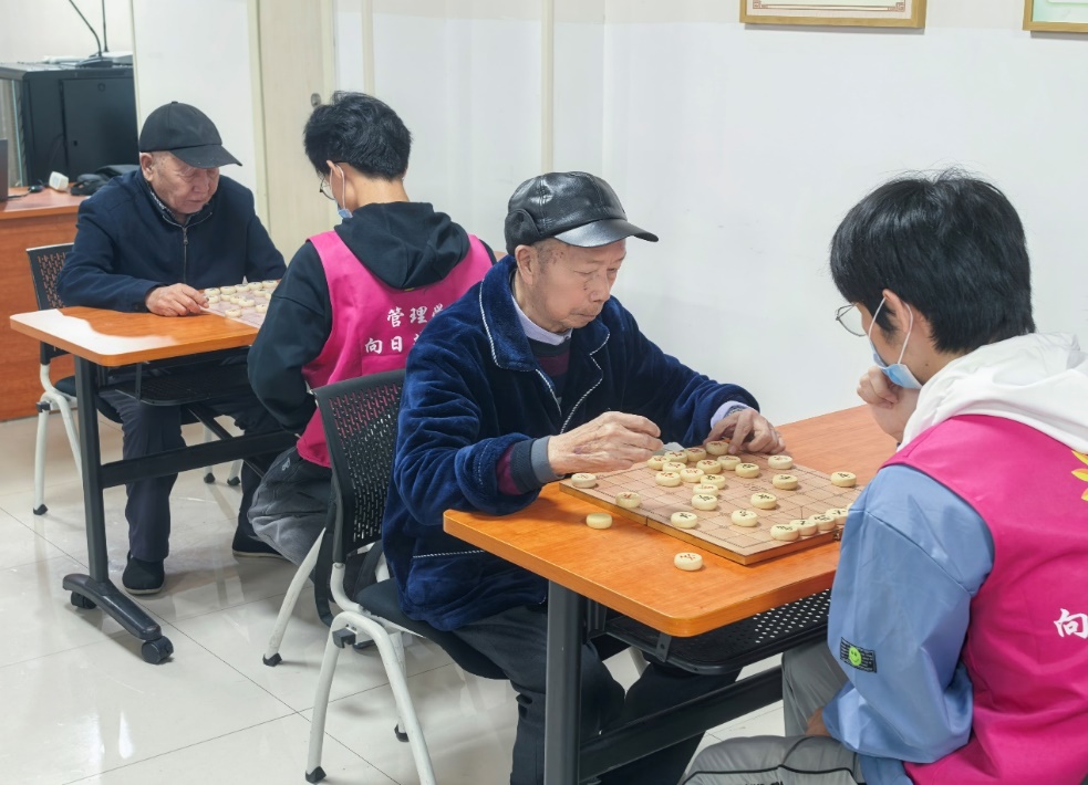 活动现场暖意融融,学生志愿者们提前备好色彩鲜艳的串珠材料,耐心指导老人们穿线、打结、组合,手把手协助完成手链、挂件等精美饰品。老人们专注投入,时而相互交流技巧,时而与学生分享生活趣事,欢声笑语萦绕其间。象棋桌旁,青年学子与老年棋友两两对弈,楚河汉界间你来我往,既有竞技的专注,更有忘年交的融洽。