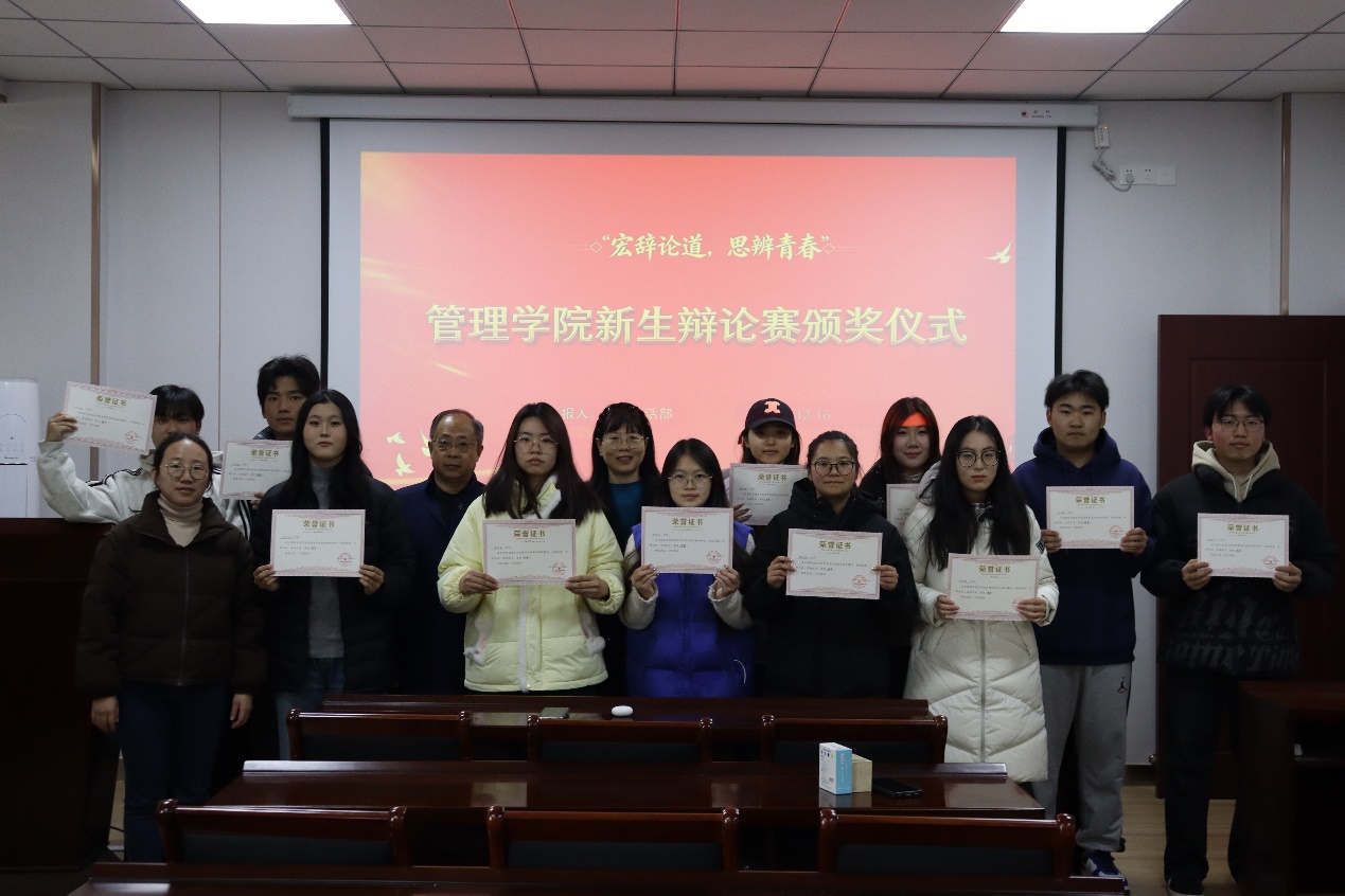冬阳煦暖,思辨生辉。12月16日下午,管理学院在明德楼A404教室举行2025级新生辩论赛决赛暨颁奖仪式。学院党总支副书记丁正荣、辅导员老师王煜出席活动,与50余名新生共同见证了这场思辨与表达的交锋。